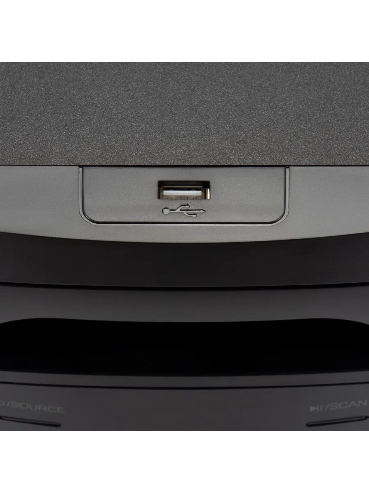 Микросистема позволяет синхронизироваться с ней различными способами. Среди них есть беспроводной протокол Bluetooth версии 5.0. Он обеспечивает стабильное соединение и передачу аудио без потерь в качестве. Также к прибору можно подключиться и другими способами. В нём предусмотрен вход AUX под стандартный mini-jack, картридер для накопителей типа SD и USB-разъём под флешки. Если поблизости вообще нет источника, внутри устройства установлен тюнер, который ловит большое количество радиостанций.
