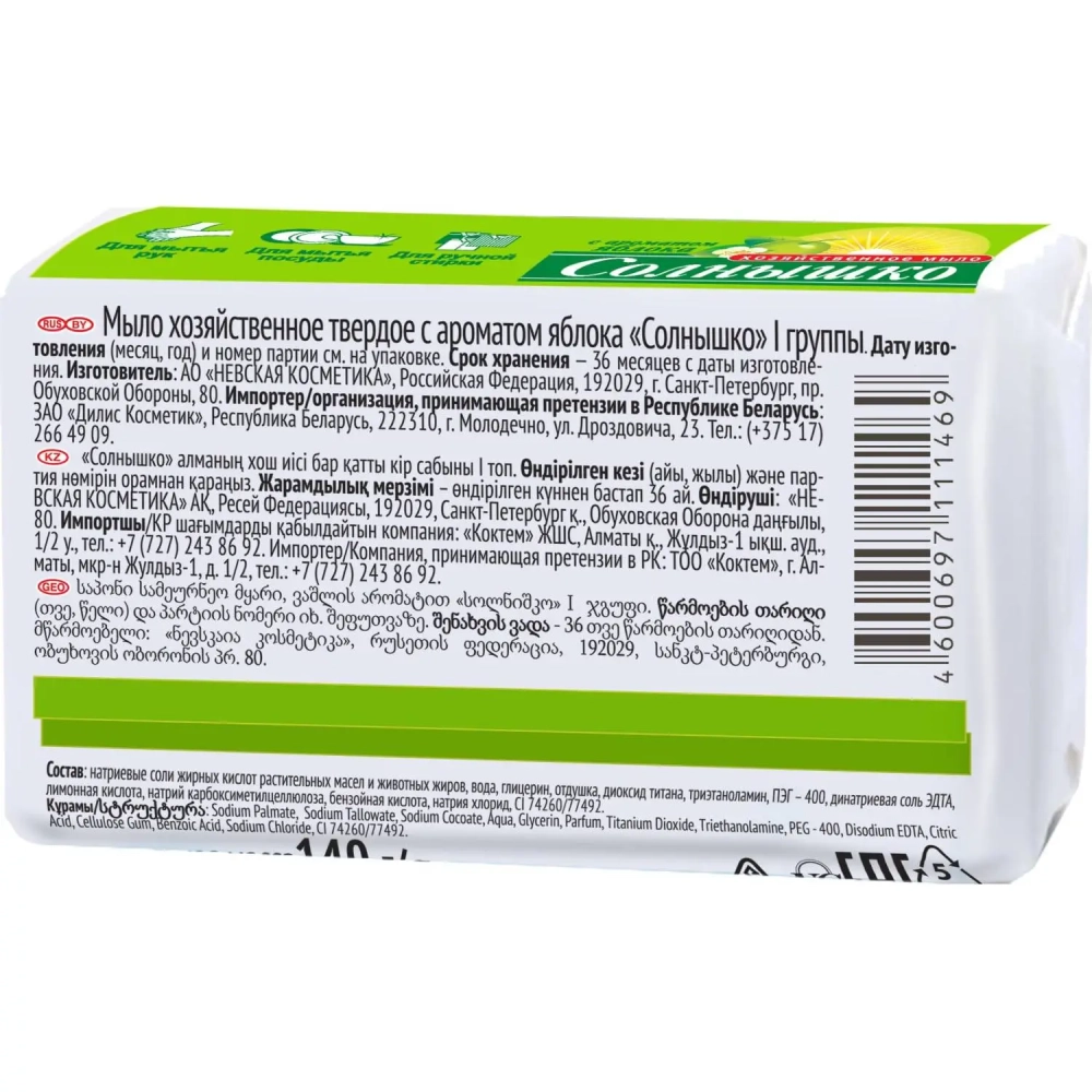 Мыло хозяйственное 140г СОЛНЫШКО в обертке, яблоко