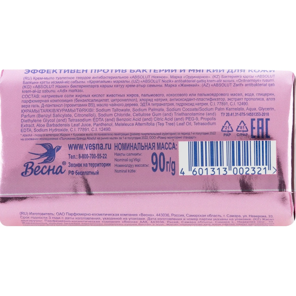 Мыло туалетное 90г ABSOLUT Антибактериальное в ассортименте