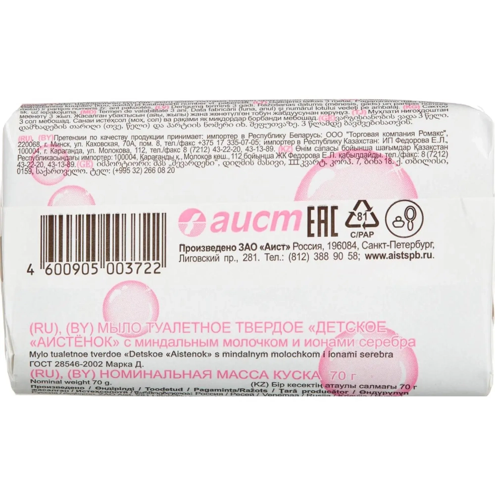 Мыло туалетное детское АИСТЕНОК с миндальным молочком и ионами серебра_СПб