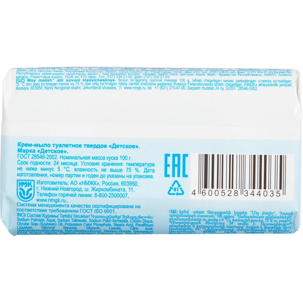 Мыло туалетное крем Мой малыш классическое 100 г