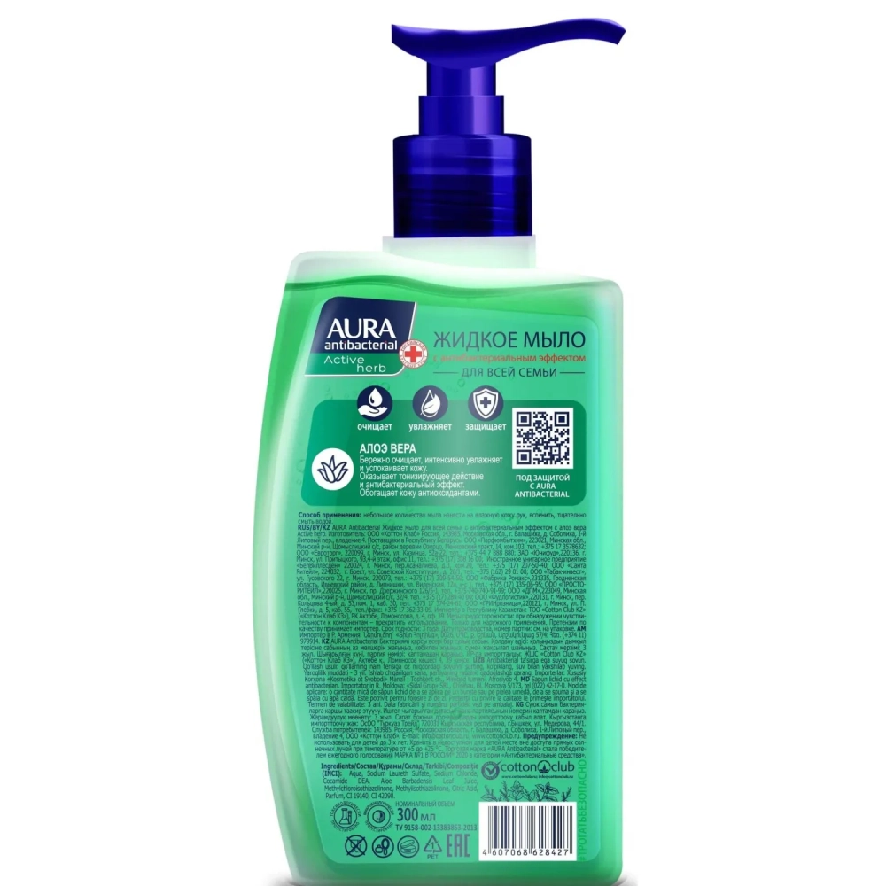 Мыло жидкое AURA антибакт. Алоэ Вера,300мл с дозатором