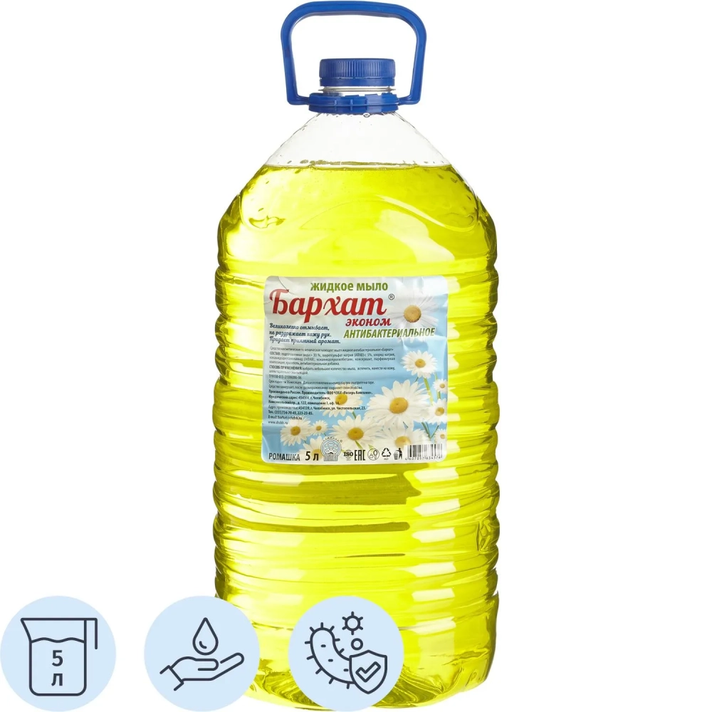 Мыло жидкое Бархат Эконом с антибактериальным эффектом Ромашка 5л