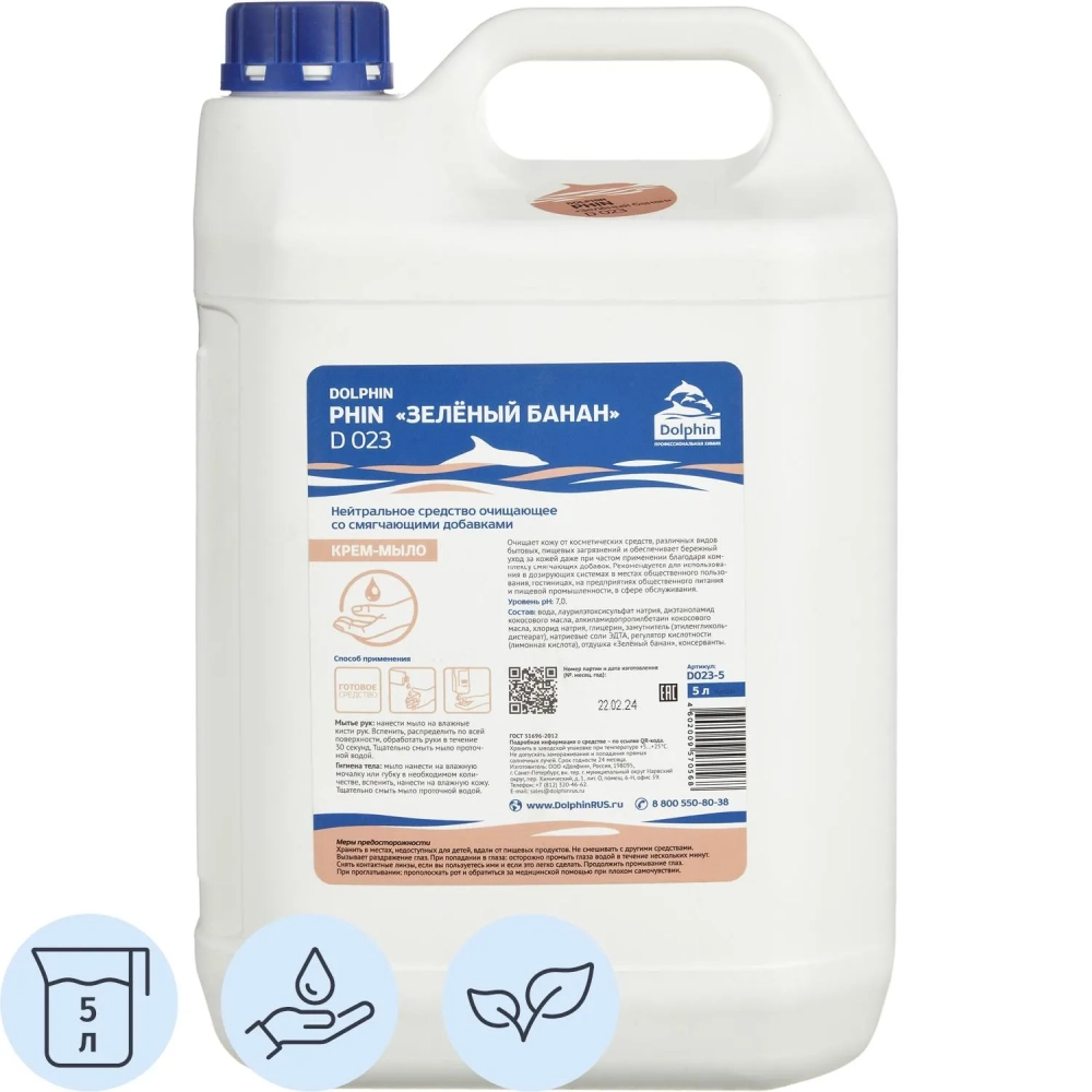 Мыло жидкое гелевое ПРОФ аромат зеленый банан Dolphin/Phin(D023-5), 5л