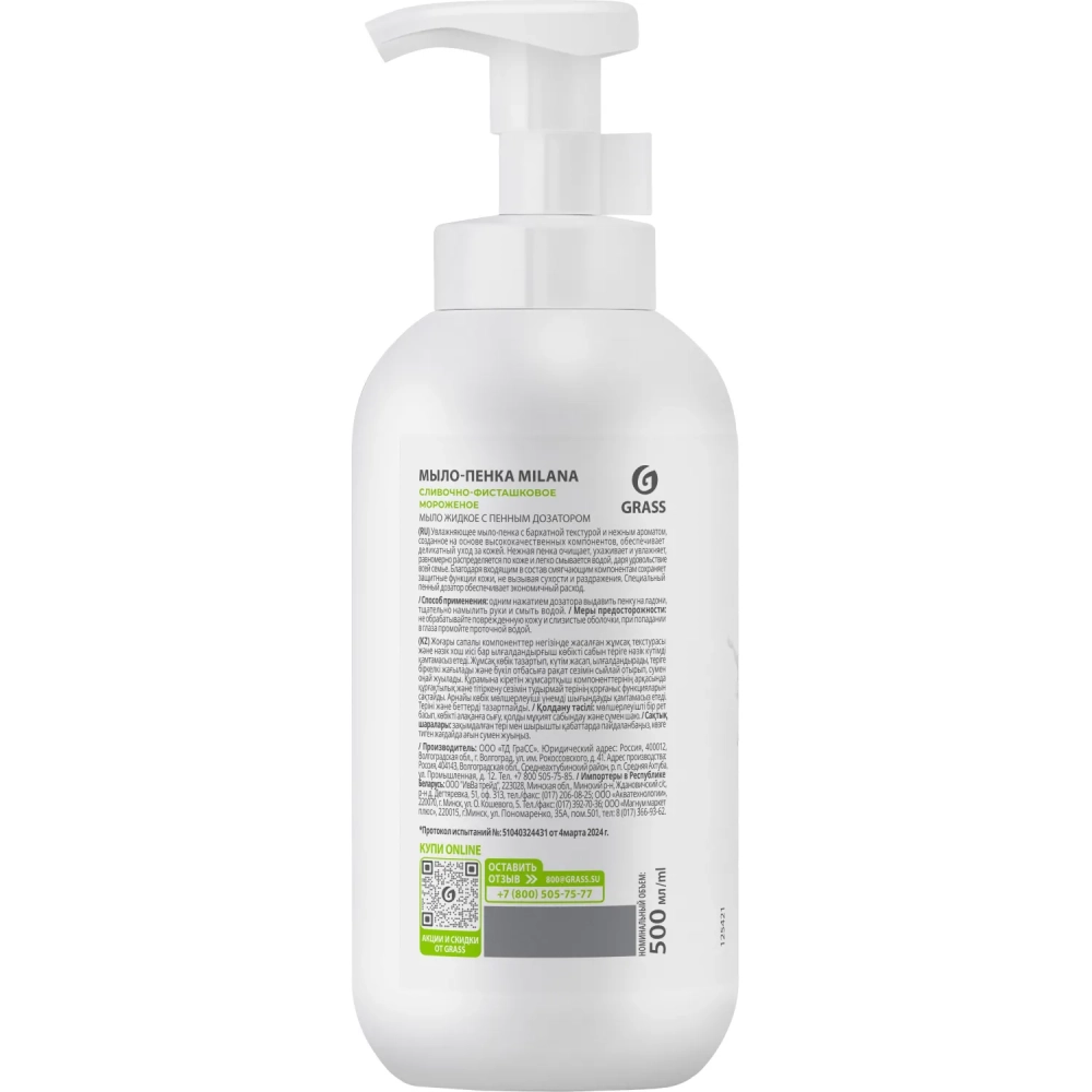 Мыло жидкое Grass Milana сливочно-фисташковое мороженое 500мл