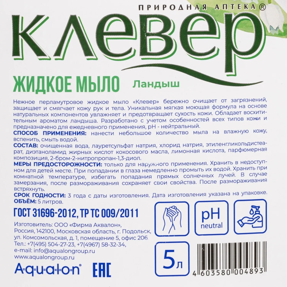 Мыло жидкое КЛЕВЕР 5л канистра Ландыш _КП
