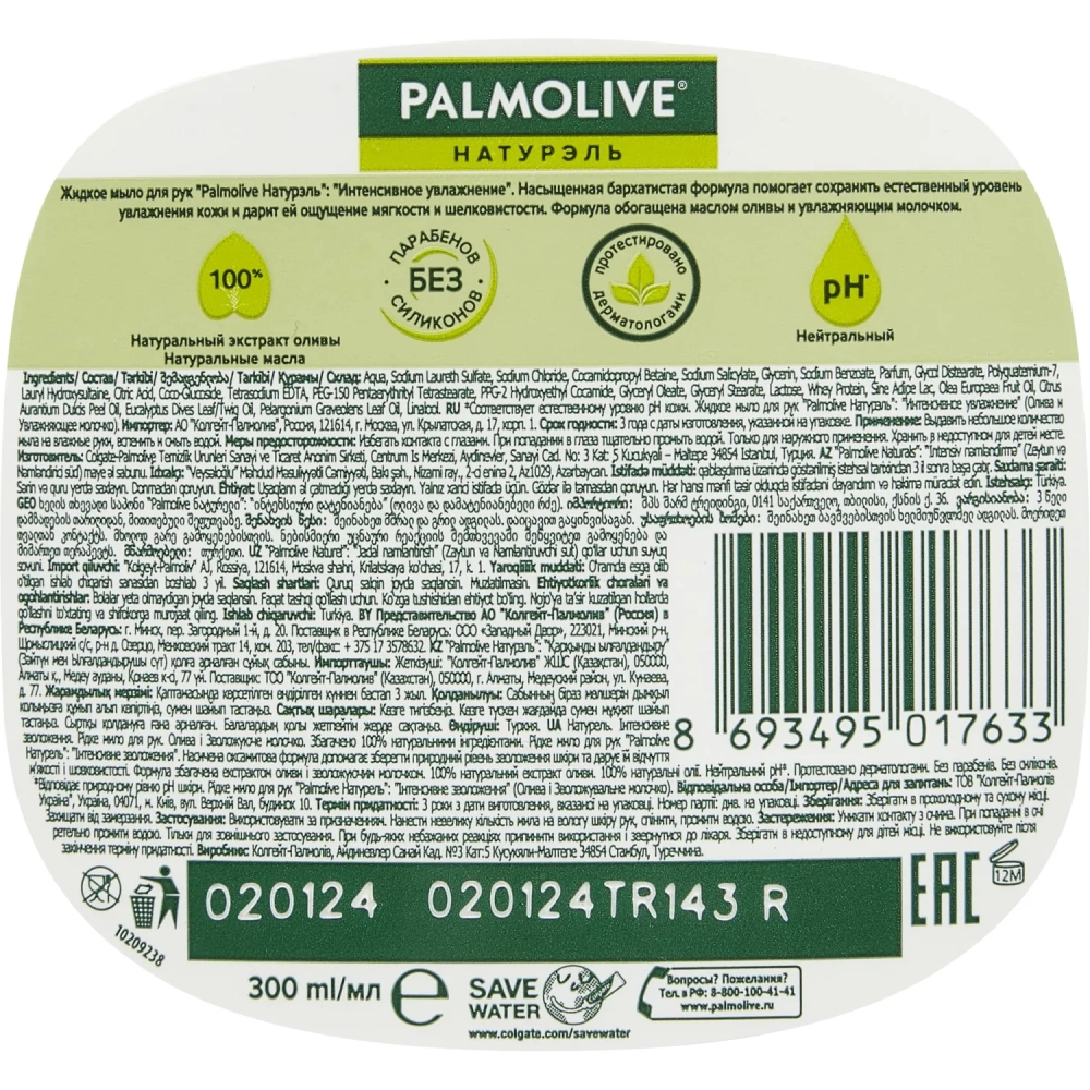 Мыло жидкое PALMOLIVE 300мл Олива+увлажняющее молочко с дозатором