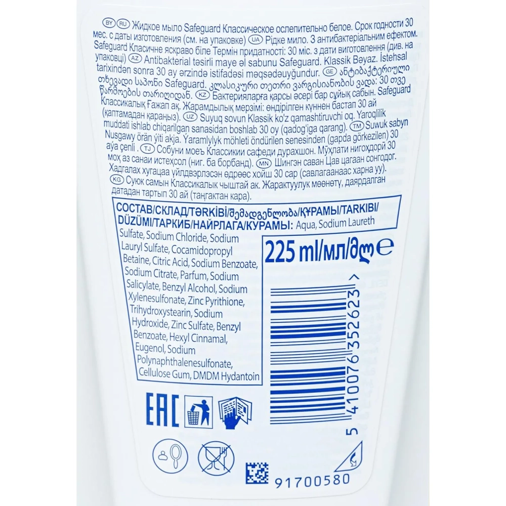 Мыло жидкое SAFEGUARD Ослепительно белое 225мл антибактериальное