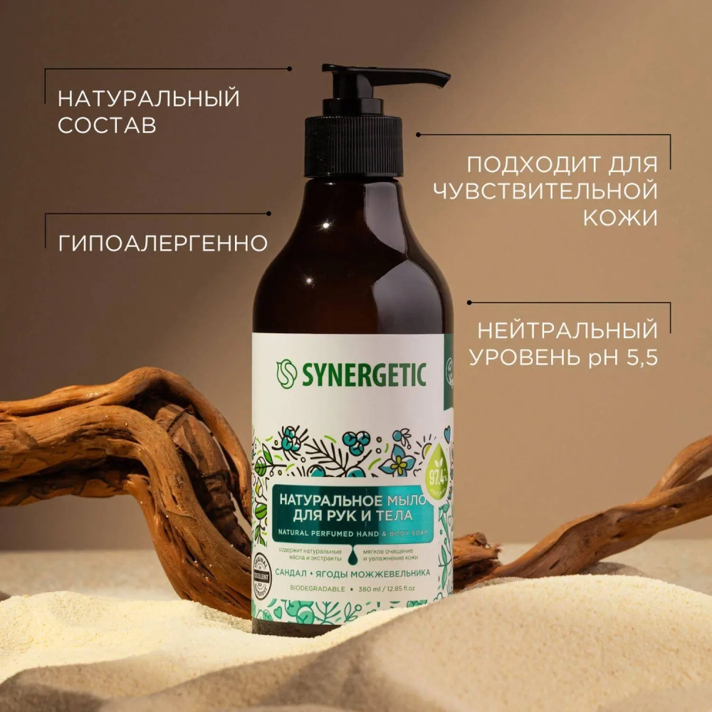 Мыло жидкое Synergetic Натуральное Сандал/Ягоды можжевельника 380мл