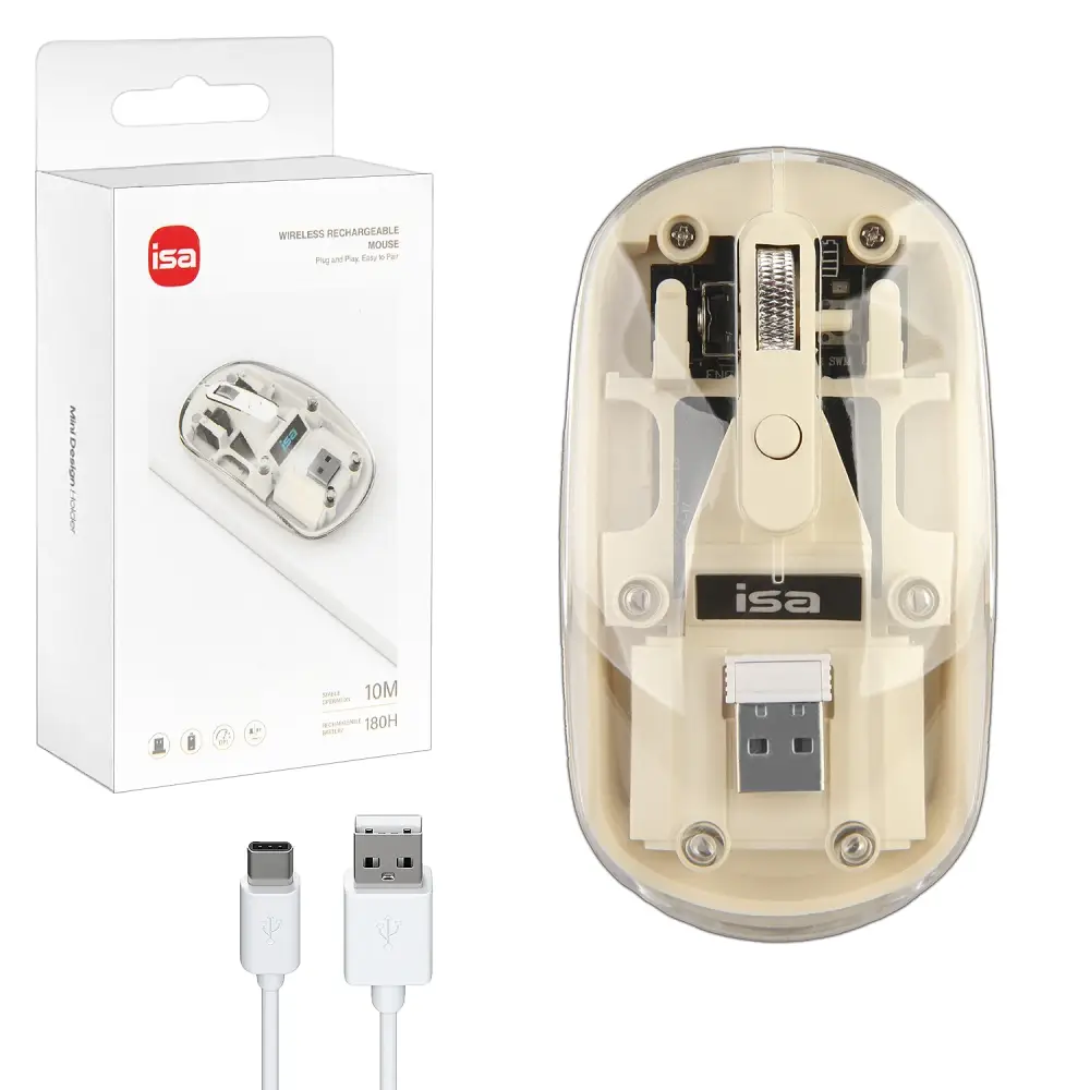 Мышь беспроводная WM-8 ISA Прозрачно-бежевая (60 шт/кор)