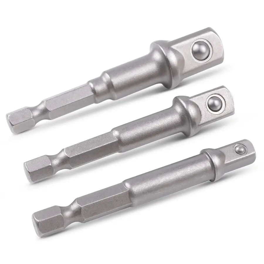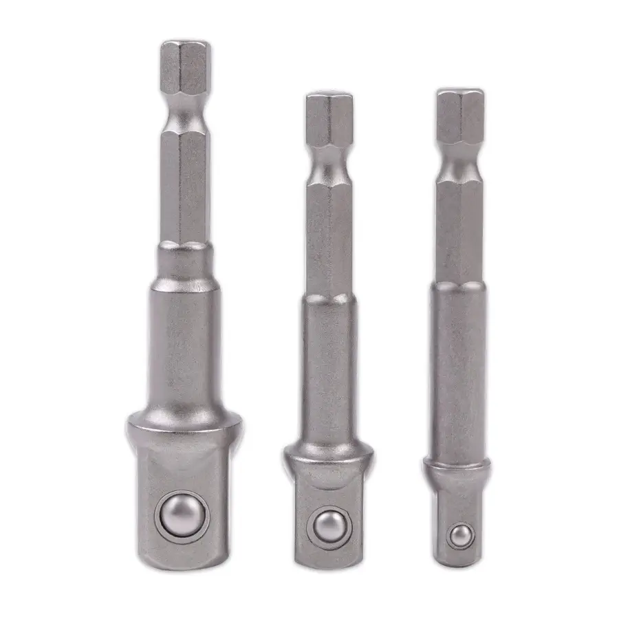 Набор адаптеров применяется совместно с торцевыми головками. Предназначен для перехода с шестигранного типа крепления 1/4HEX на крепление с помощью квадрата с подпружиненным шариком. В наборе три адаптера с посадочным квадратом 1/4DR, 3/8DR, 1/2DR. Адаптеры изготовлены из хромованадиевой стали.