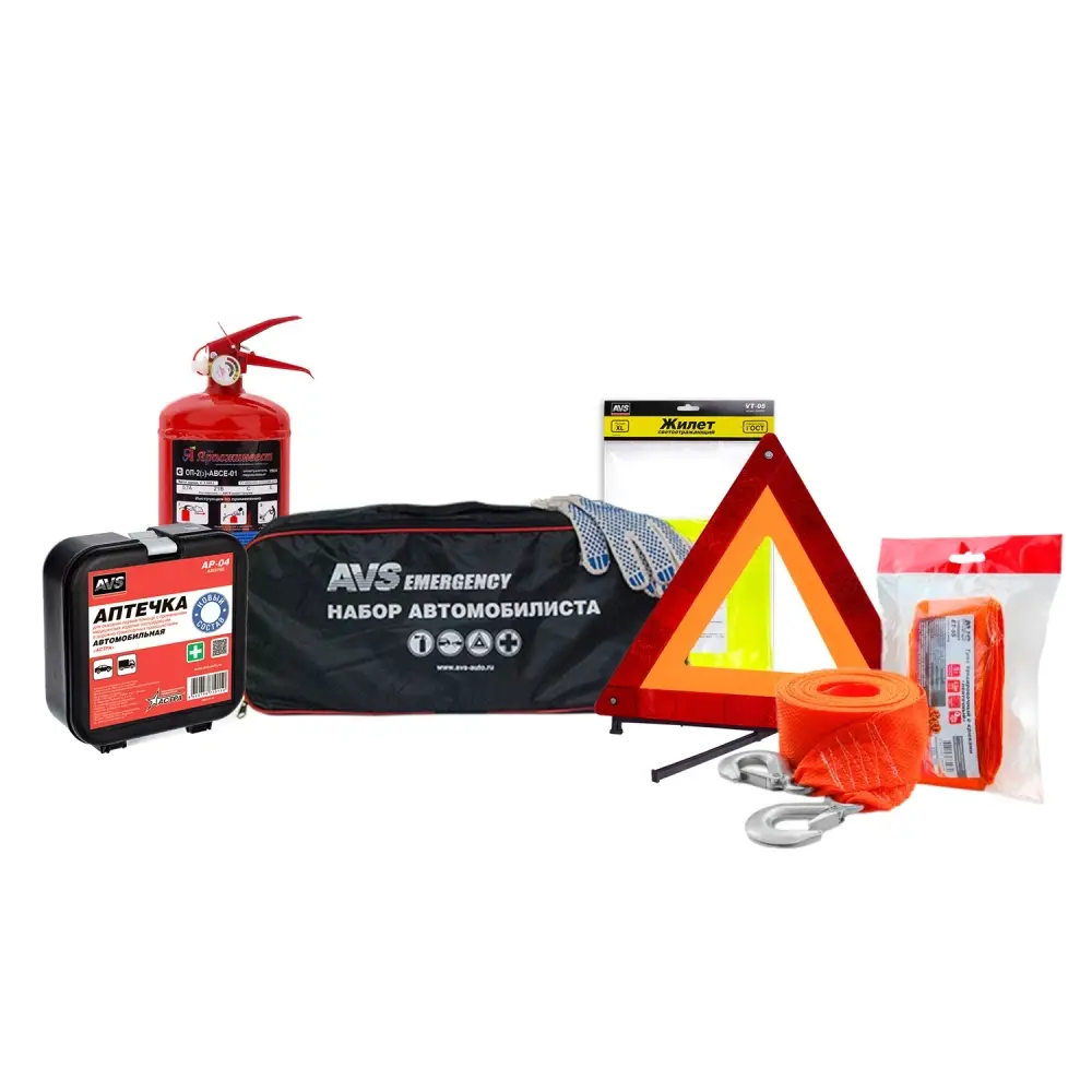Набор автомобилиста (огнетушитель ОП-2, аптечка Н/О, знак, трос 5т, перчатки) AVS AN-03