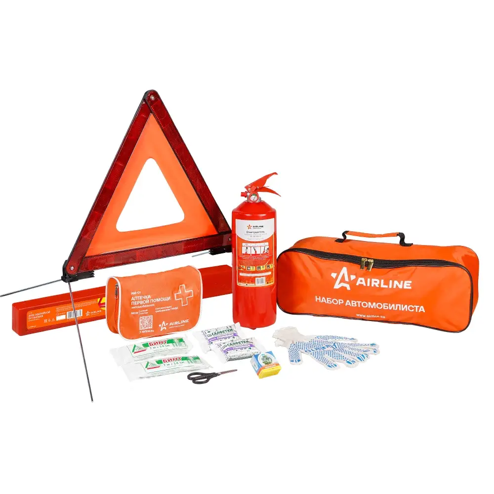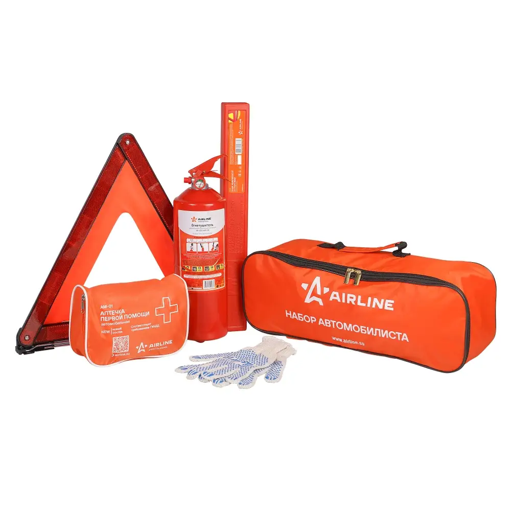 Универсальный комплект для техосмотра необходим каждому автомобилю для соответствия правилам управления транспортным средством. Набор от AIRLINE укомплектован гостовским составом изделий, требуемых для оперативного разрешения непредвиденных ситуаций в дороге. Для хранения изделий предусмотрена удобная сумка, которая поможет при транспортировке набора в салоне автомобиля. Соответствует всем предъявляемым правилам, требованиям и ГОСТам и достаточен для прохождения Гостехосомтра.