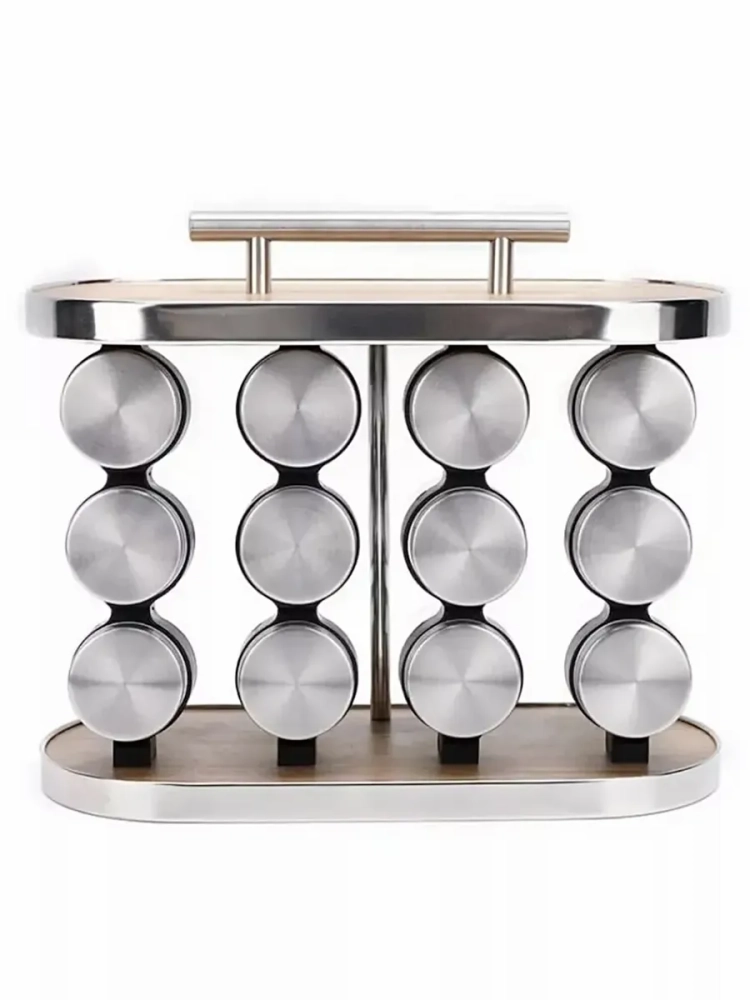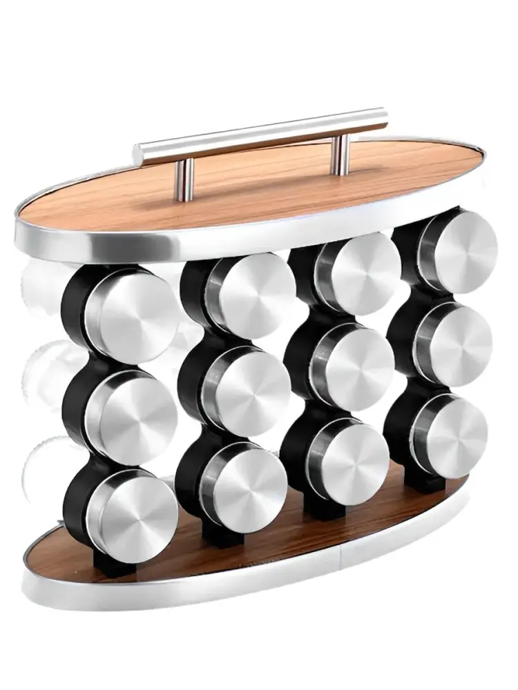 Каждой хозяйке на кухне необходим удобный и практичный органайзер для хранения специй. Когда приправы хранятся в пакетиках, они часто теряют свой вкус и становятся влажными. Однако, закручивающиеся баночки для специй не пропускают влагу и воздух, что позволяет сохранять приправы свежими и ароматными на протяжении длительного времени. Кроме того, хранение специй в организованном порядке делает кухню более аккуратной и эстетичной. Органайзер для специй является идеальным решением для тех, кто ценит современный стиль и высокое качество. Он выполнен из нержавеющего металла с элементами дерева, а баночки для специй изготовлены из прочного закаленного стекла. Дно контейнера для специй оснащено специальным противоскользящим покрытием, что обеспечивает надежную фиксацию подставки на любой поверхности. Прозрачные стенки стеклянных баночек позволяют видеть количество оставшихся приправ, что делает использование органайзера еще более удобным и практичным. Объем каждой баночки для хранения специй составляет 90 мл, а комплект включает 12 баночек.