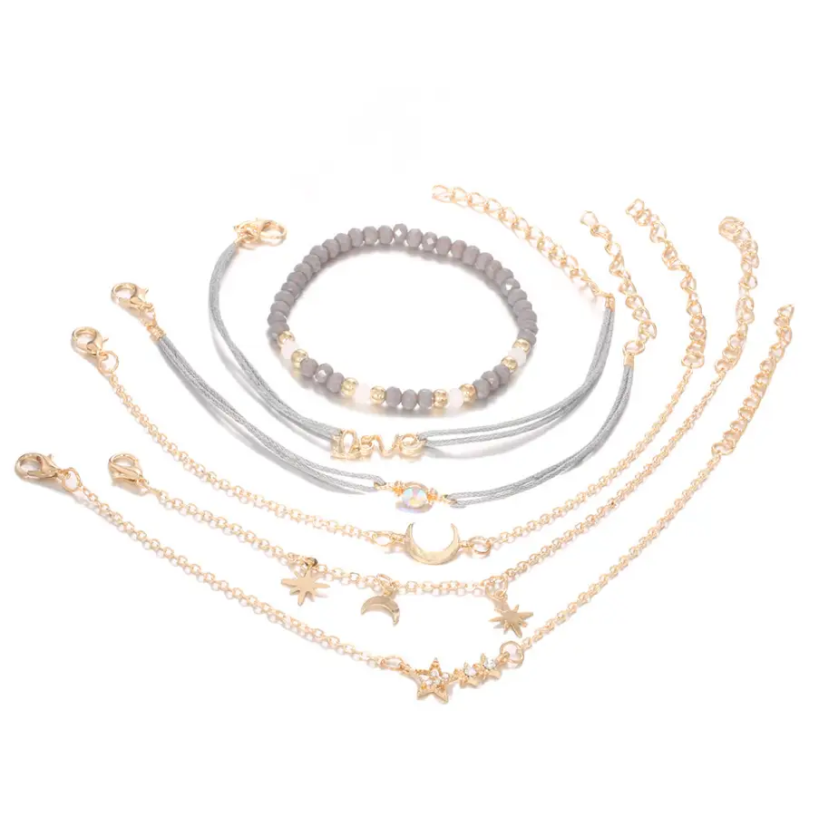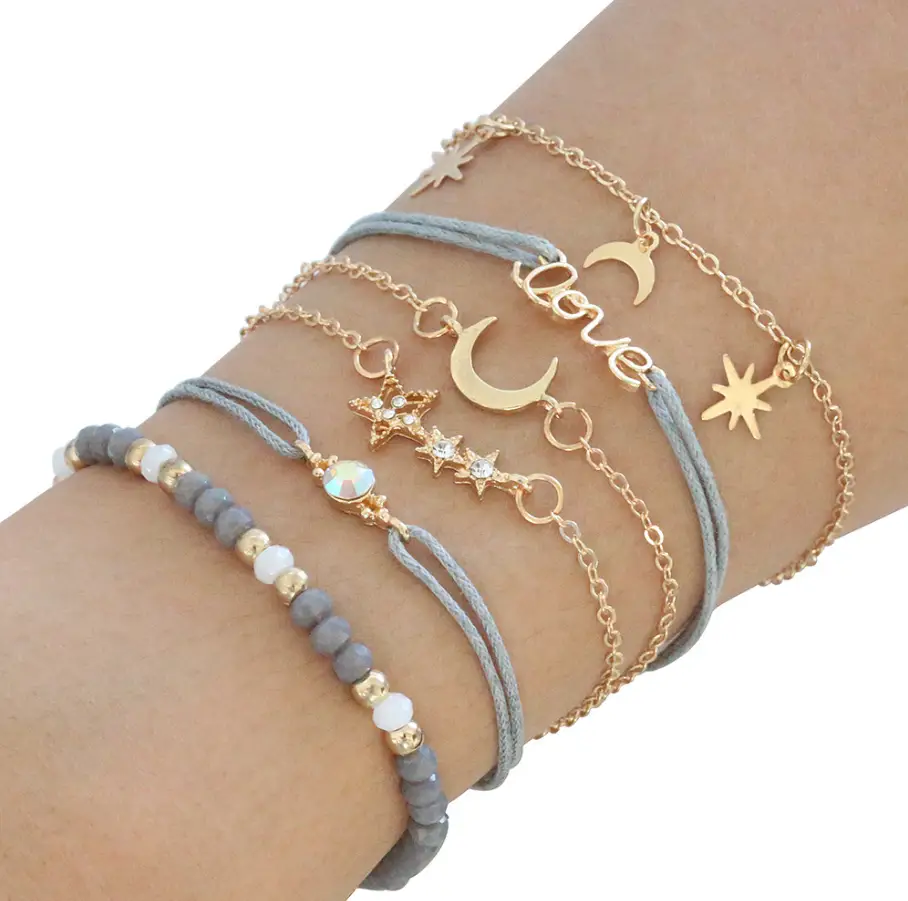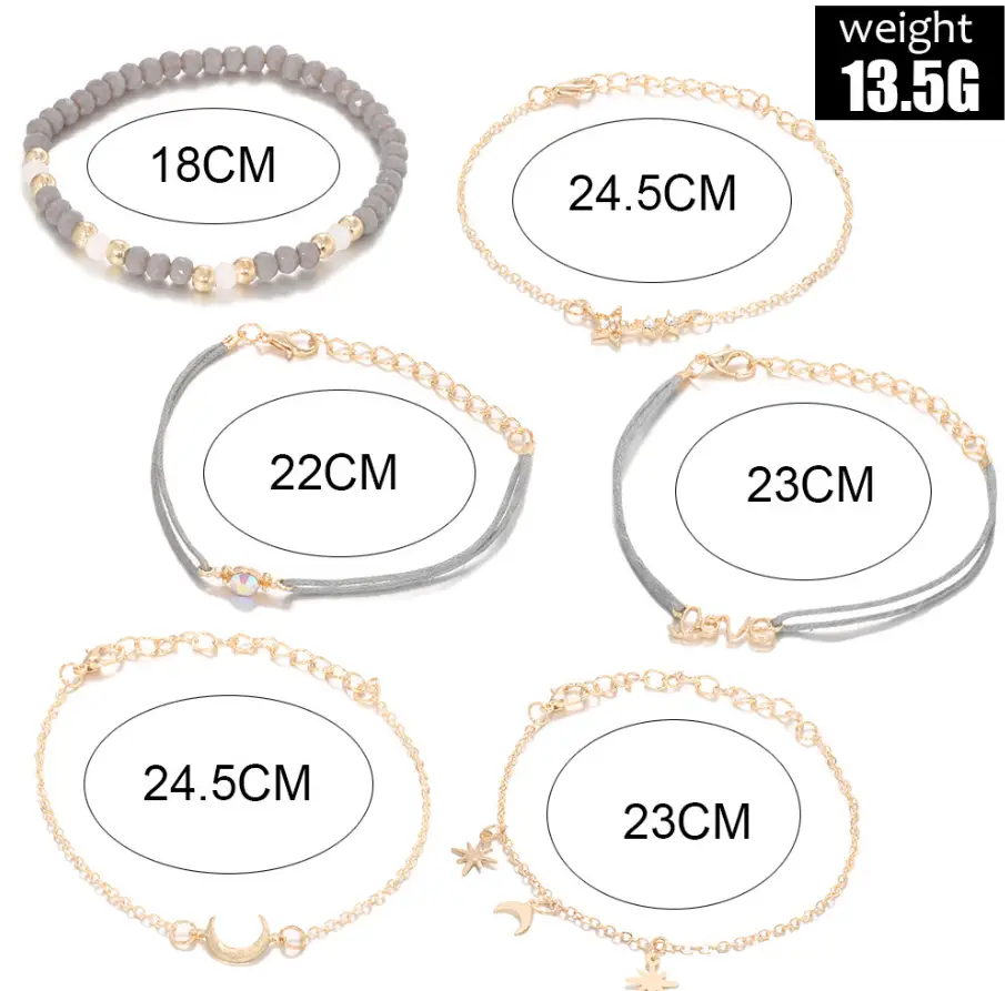 Набор браслетов с камнем цепочкой нитью голубые 6 штук