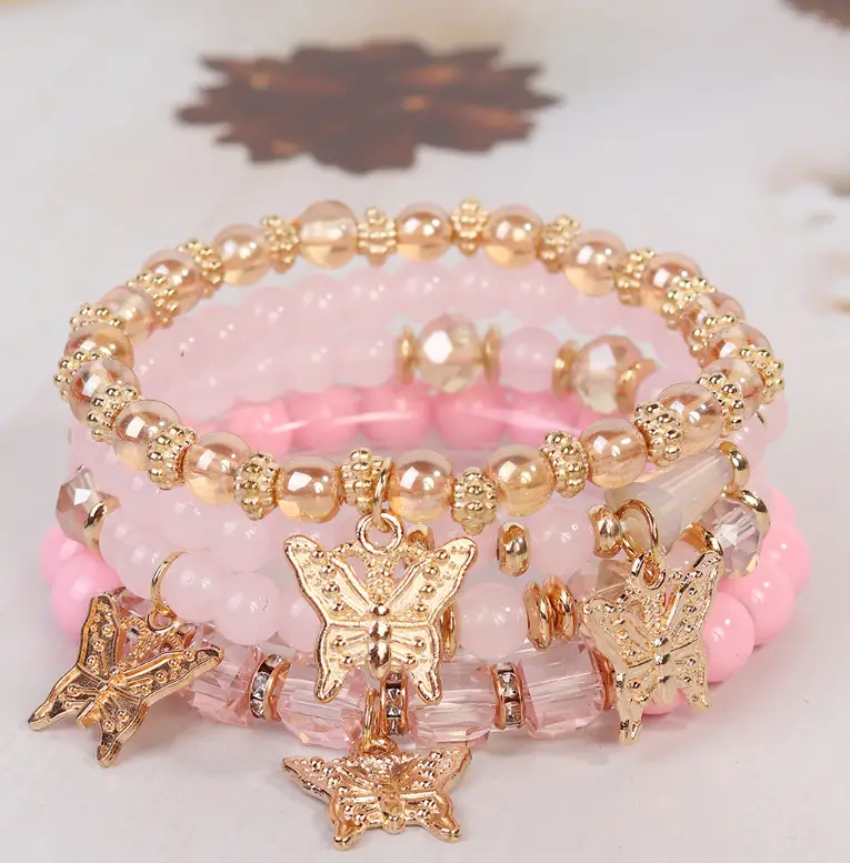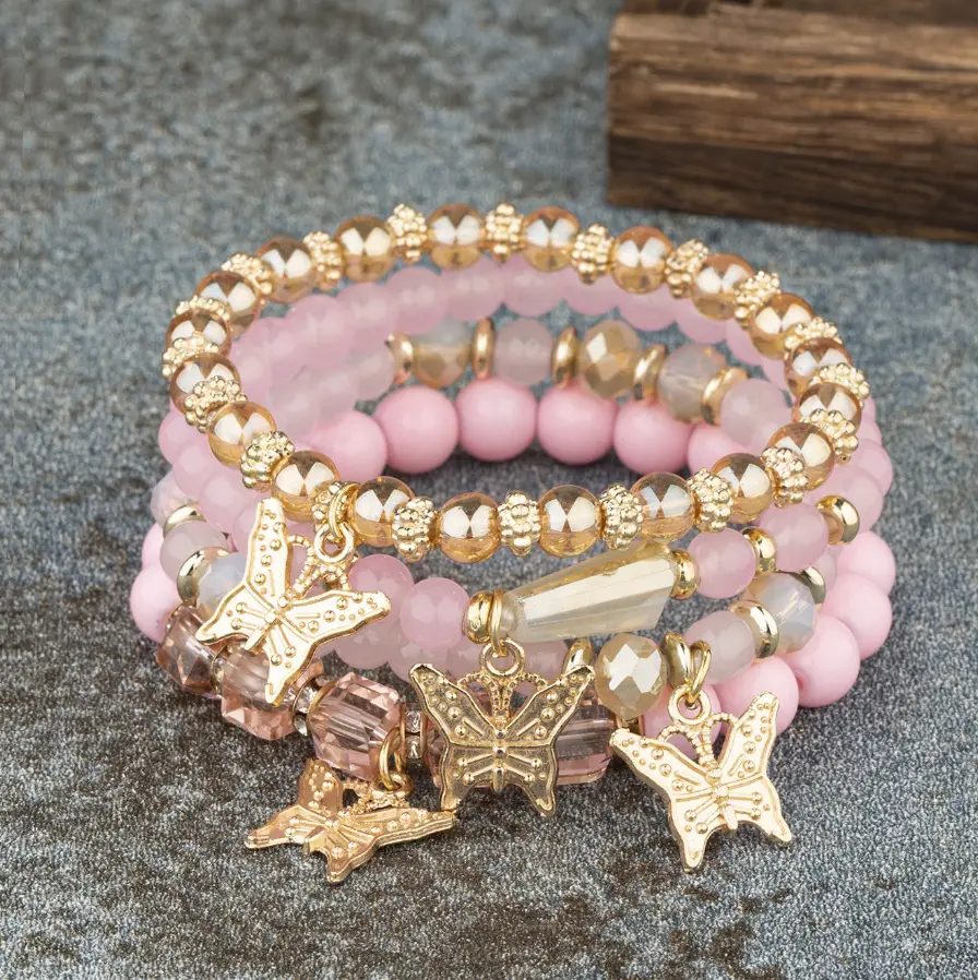 Набор браслетов с подвесками розовые 4 штуки