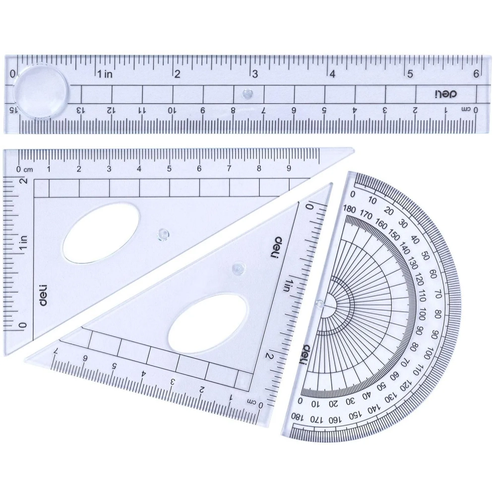 Набор чертежный Deli E9597 малый: лин 15см,угольн 10 и 7см,трансп 8см,прозр