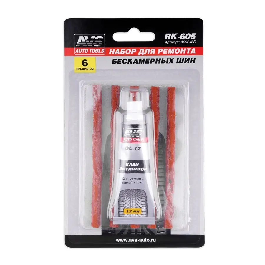 Набор для ремонта шин AVS RK-605 (клей, 5 жгутов)