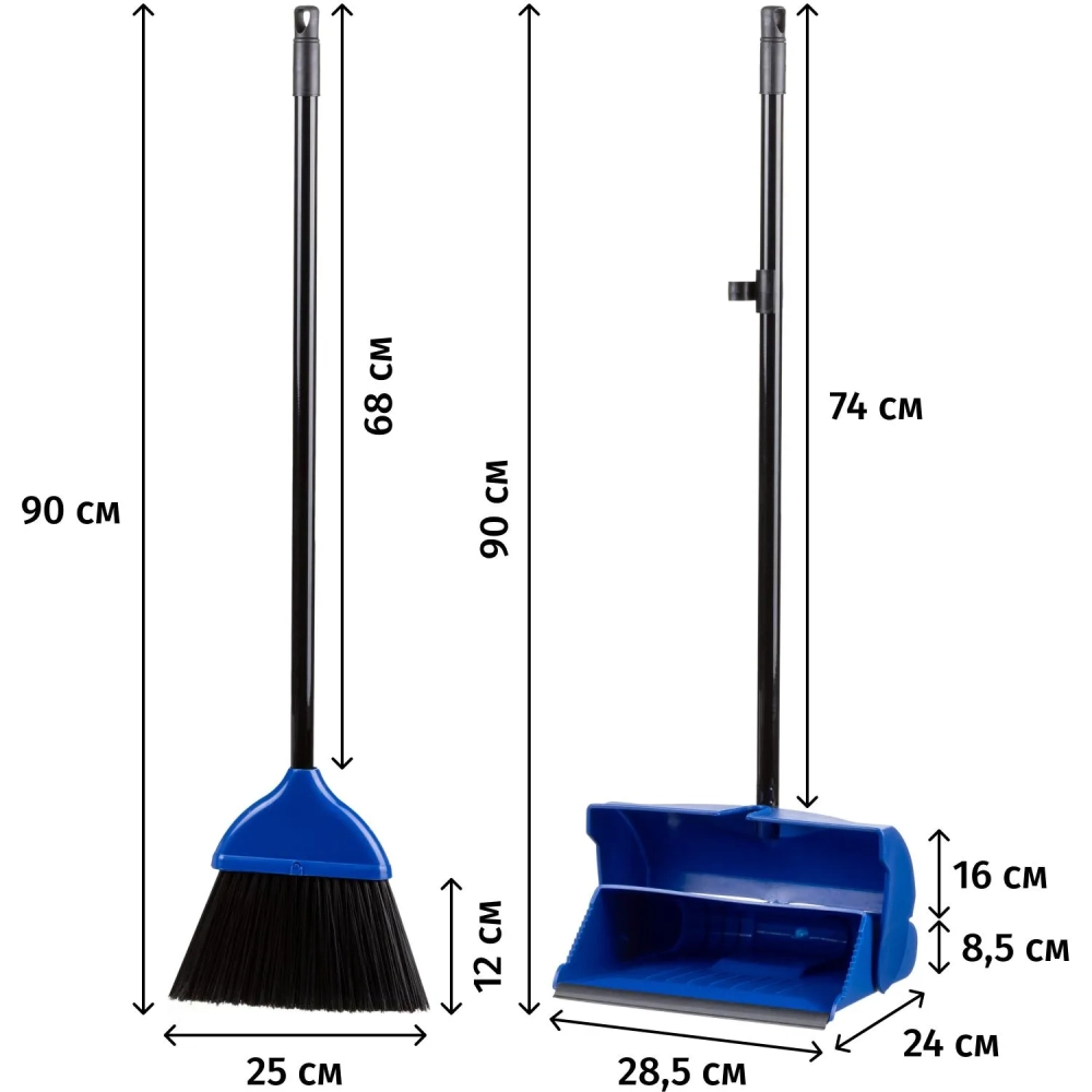 Набор для уборки совок-ловушка с метлой на рукоятке, син