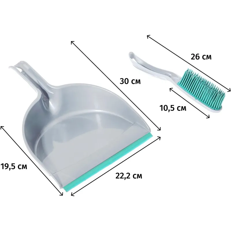Набор для уборки совок со сметкой с резиновой щетиной 24/1 сер бирюз_68844