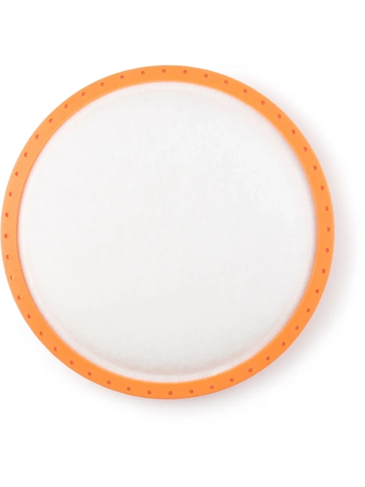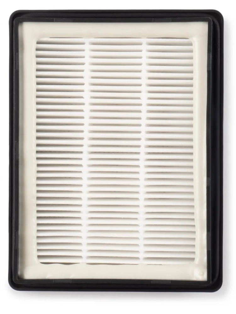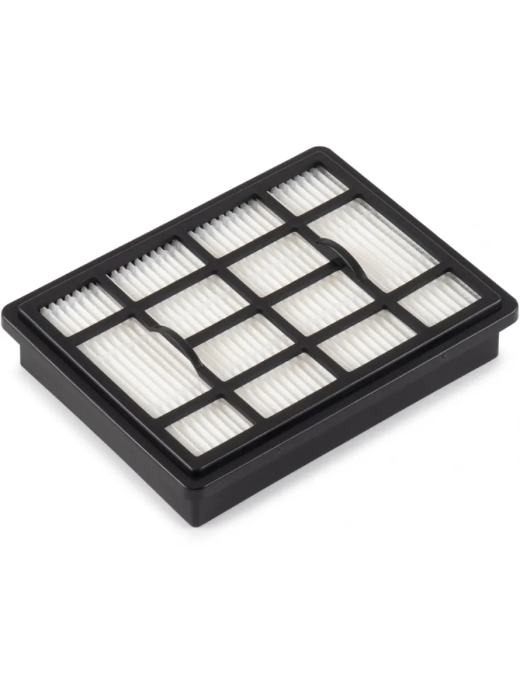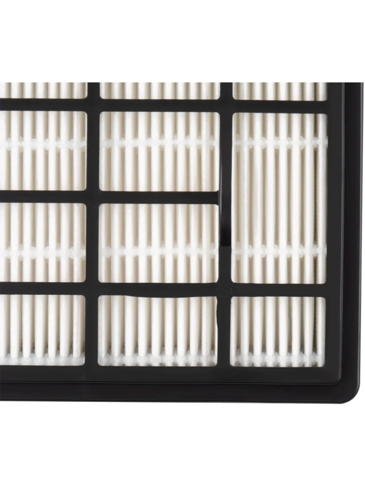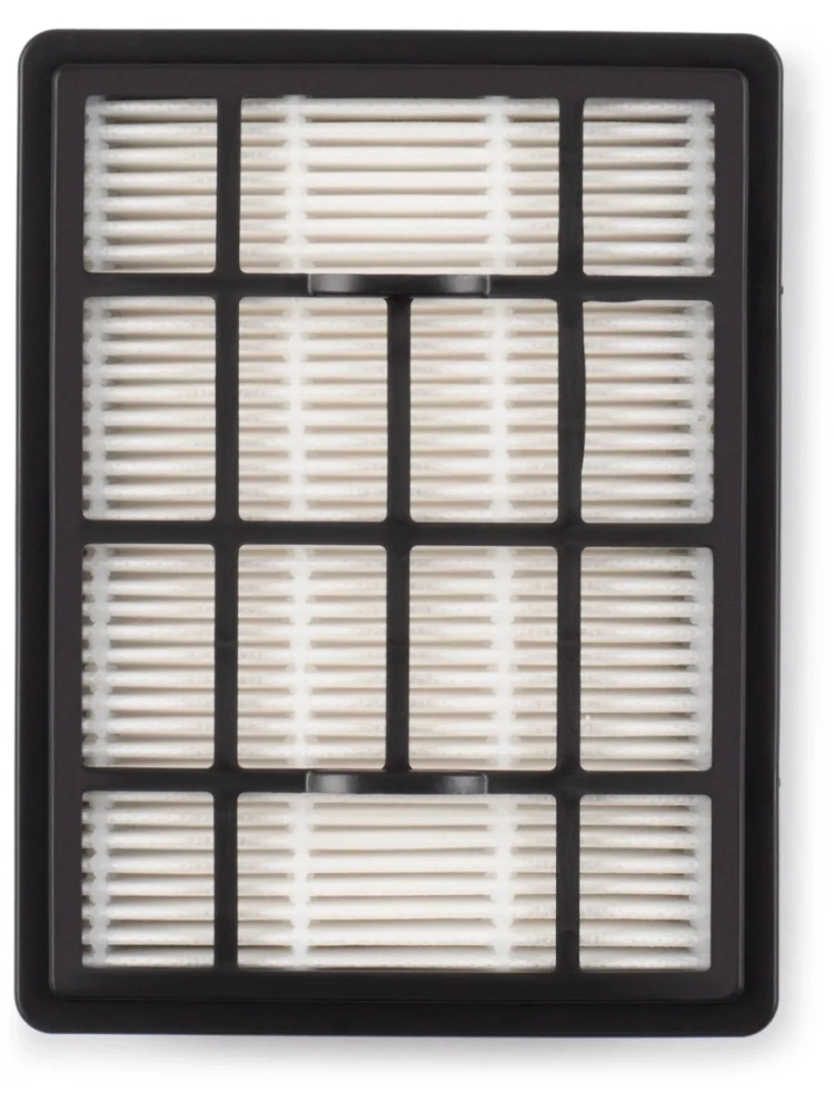 Внешний HEPA-фильтр изготовлен из тонких волокон, уложенных в несколько слоев в пластиковый корпус. Устанавливается в месте выхода воздуха наружу из пылесоса чтобы задерживать мелкие частицы пыли.