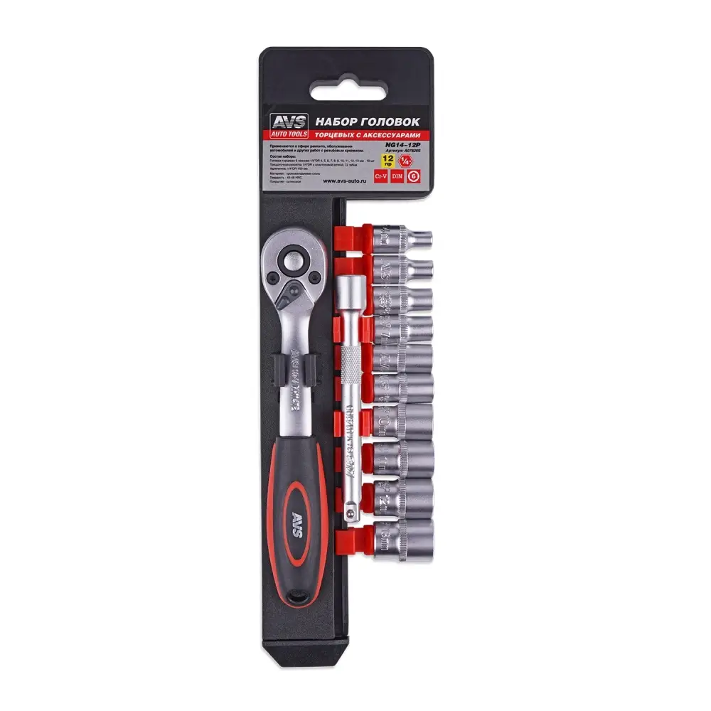 Набор головок торцевых с аксессуарами 1/4"DR (4-13 мм) (12 предметов) AVS NG14-12P