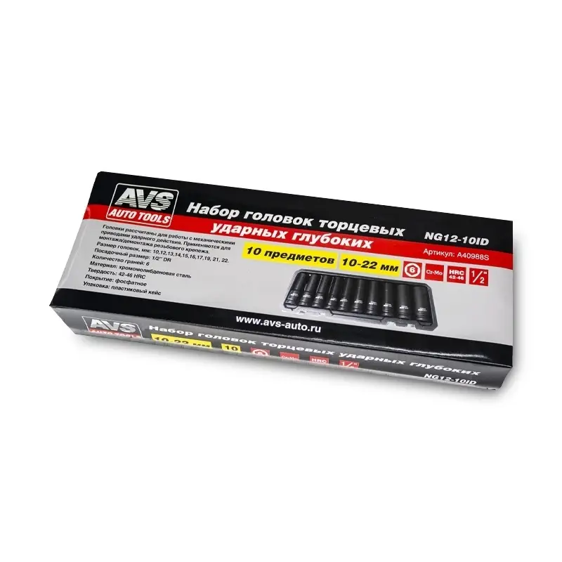 Набор головок торцевых ударных глубоких 1/2"DR (10 - 22 мм) (10 предметов) AVS NG12-10ID