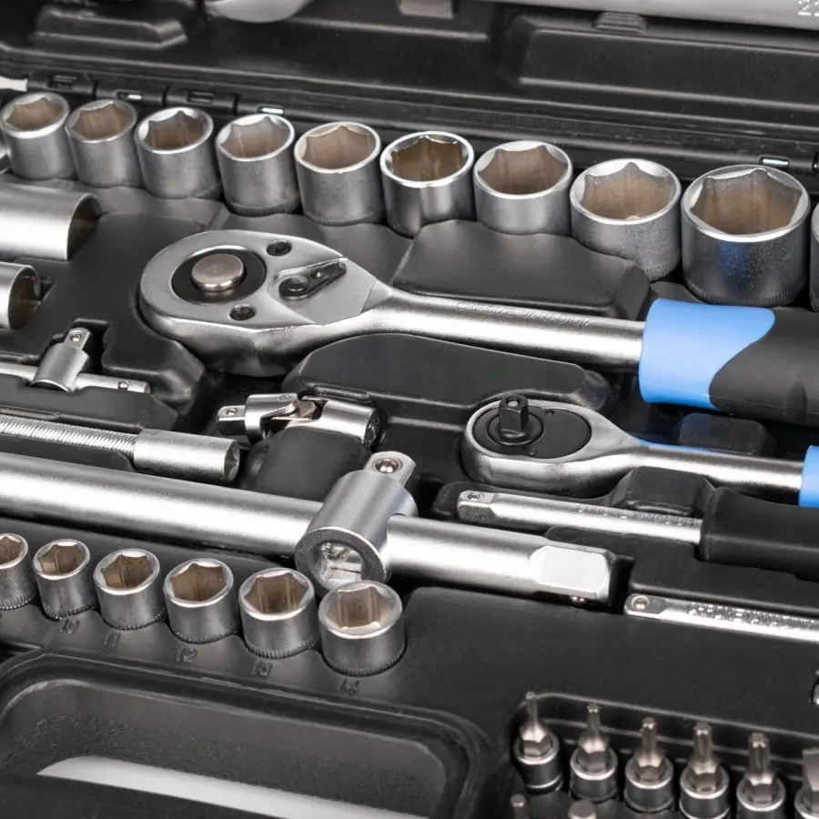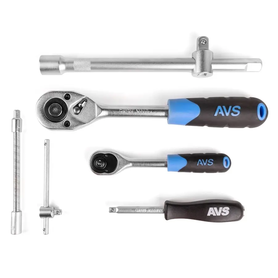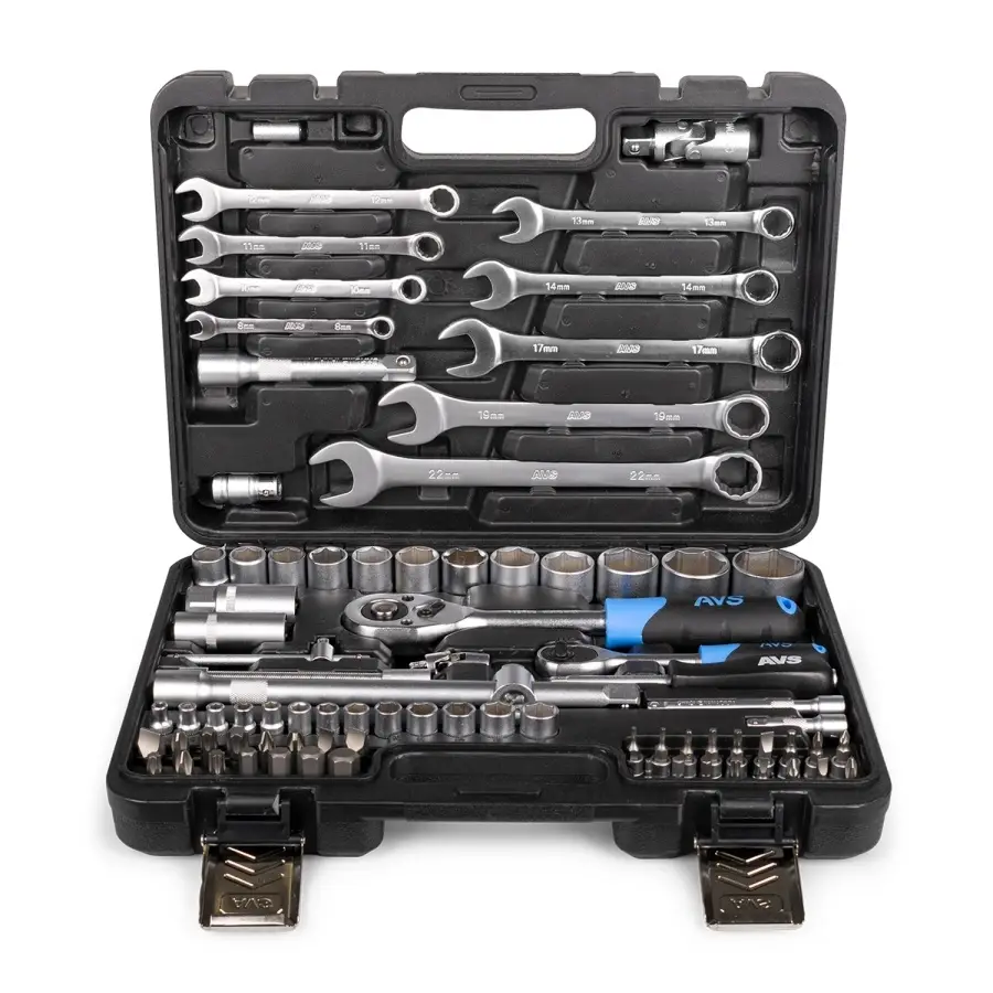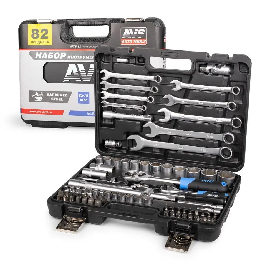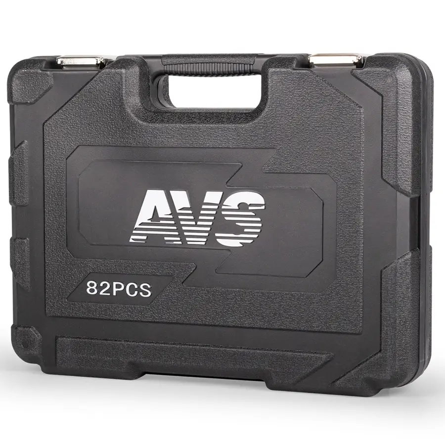 Набор инструментов AVS предназначен для ремонта и обслуживания автомобиля. Может быть использован в гараже, в мастерской или в быту. Все компоненты набора изготовлены из высокопрочной закаленной углеродистой стали, имеют матовое хромированное покрытие, благодаря чему отличаются высокой прочностью и долговечностью. Трещотки оснащены храповым механизмом на 45 зубцов и имеют двухкомпонентные эргономичные рукояти. В набор входит 82 предмета. Состав набора указан на упаковке. Прочный кейс для удобного хранения и транспортировки.