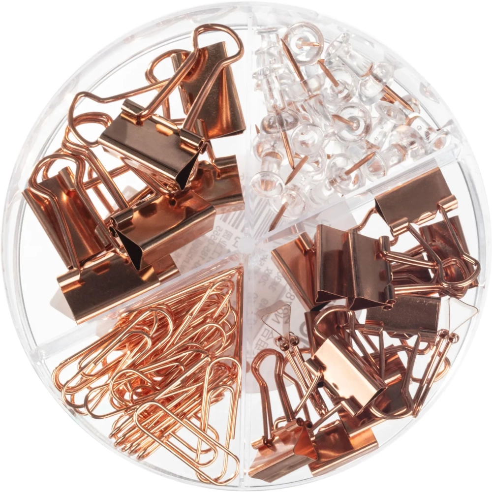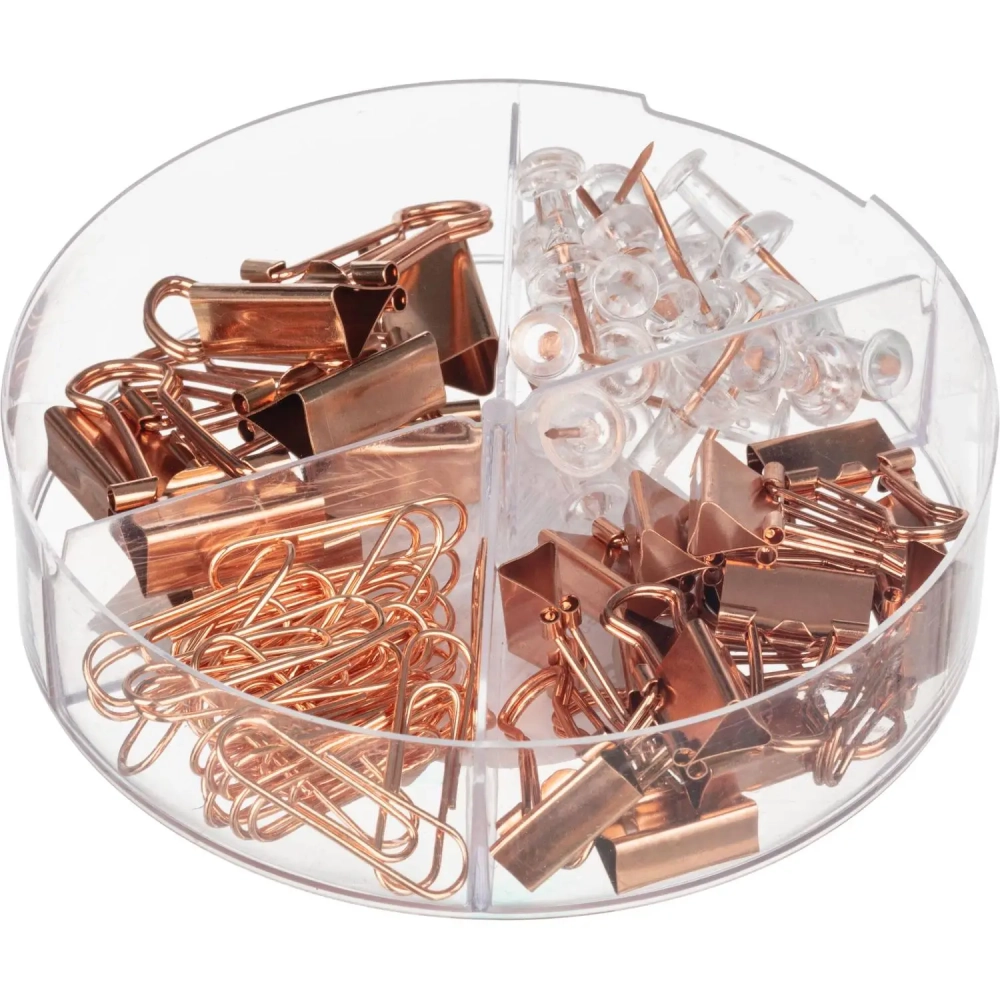 Набор канцелярский Deli 78553,4отд.(кнопки,скрепки,зажимы), роз.зол