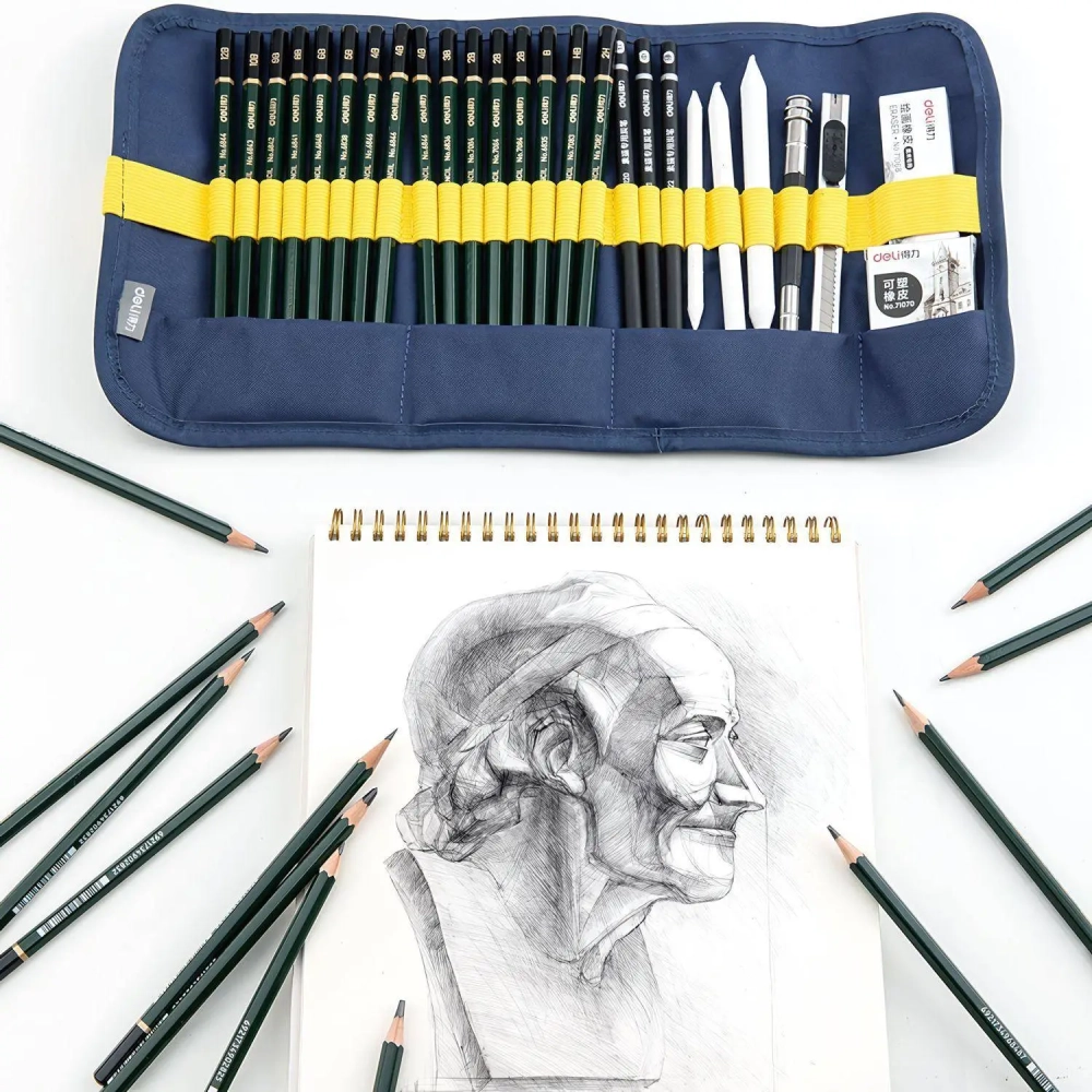 Набор карандашей чернографитовых Deli 2H-12B c угольн.каранд. 27шт 58125