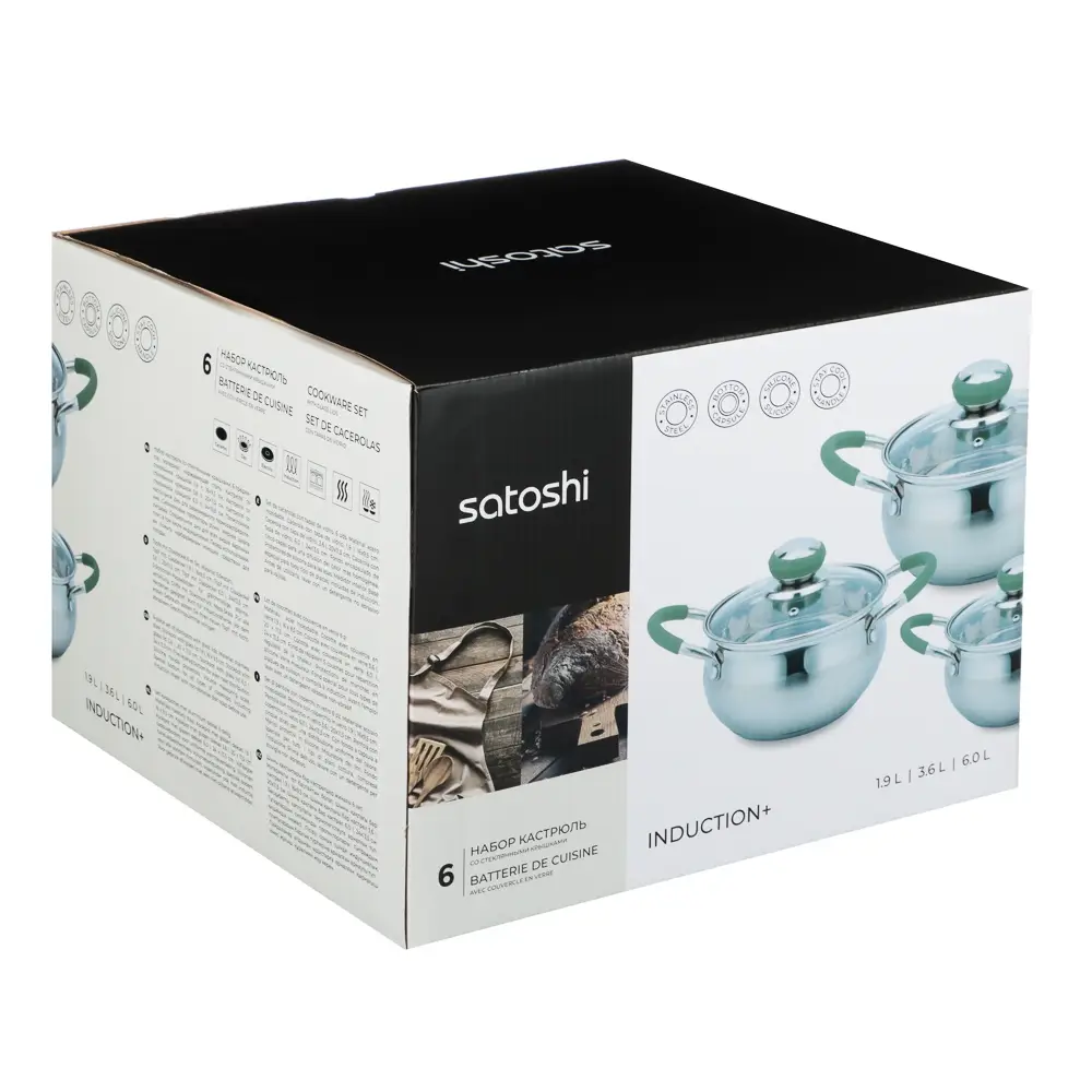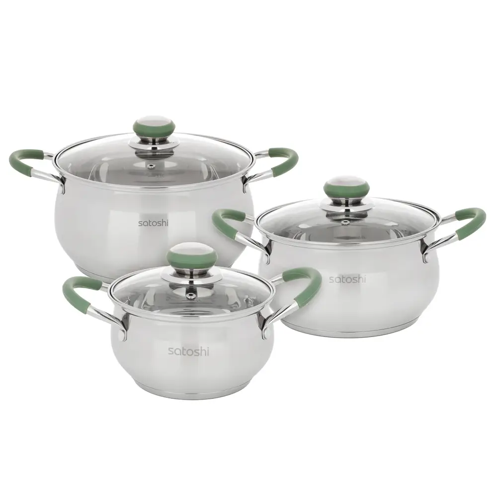 Набор кастрюль SATOSHI Марли - 6 предметов (1,9 л / 3,6 л / 6,0 л) со стеклянными крышками