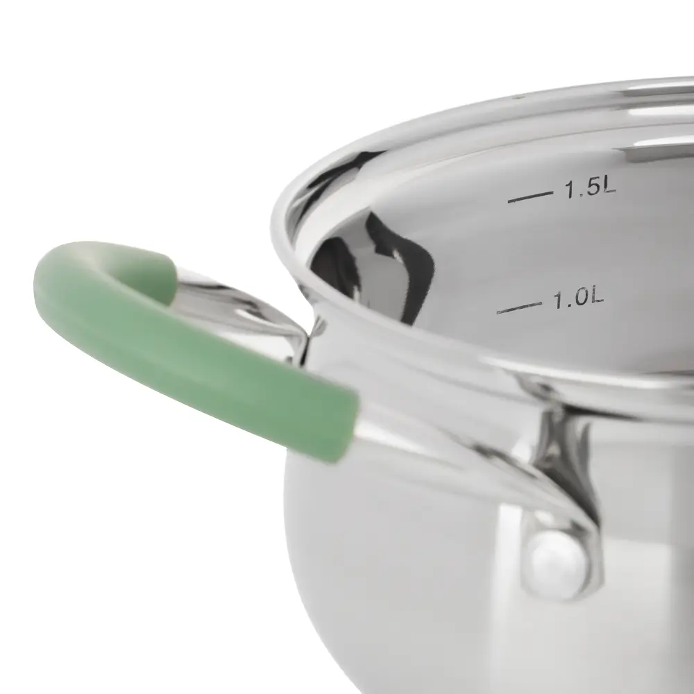 - Кастрюля 1,9 л удобна для приготовления небольших порций, соусов, десертов и разогрева.