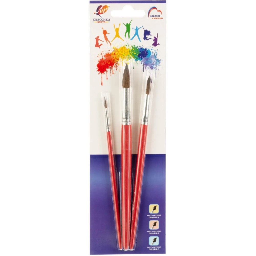 Набор кистей Классика цвета, 3 шт. ПОНИ (круглые № 2, 5, 8) 33С 2177-08