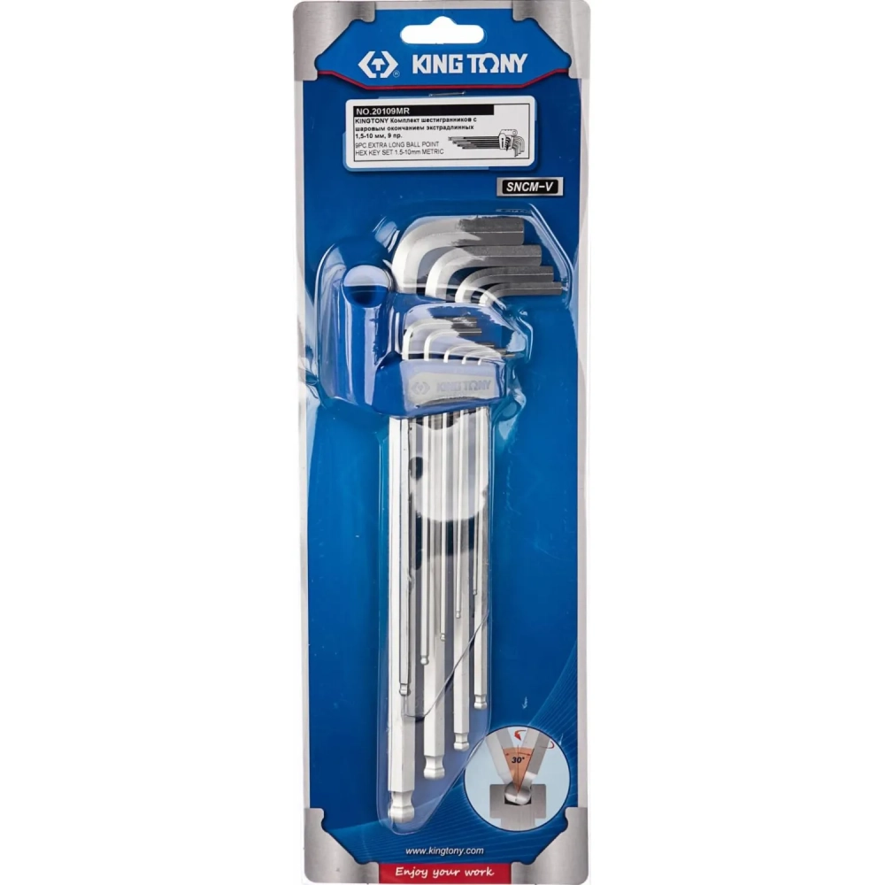 Набор ключей Г-обр.шестигран.1,5-10мм,длинные, шар.,9 пр. KING Tony 20109MR