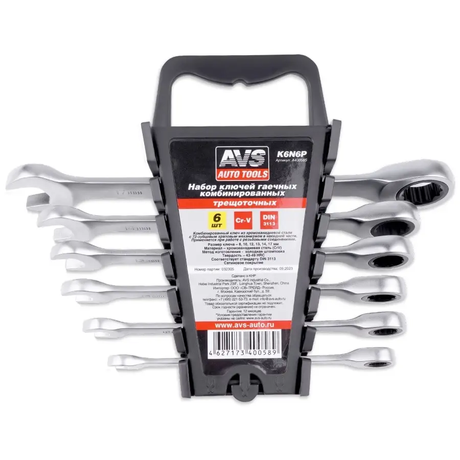Набор ключей гаечных комбинированных трещоточных в пластике (8-17 мм) (6предметов) AVS K6N6P