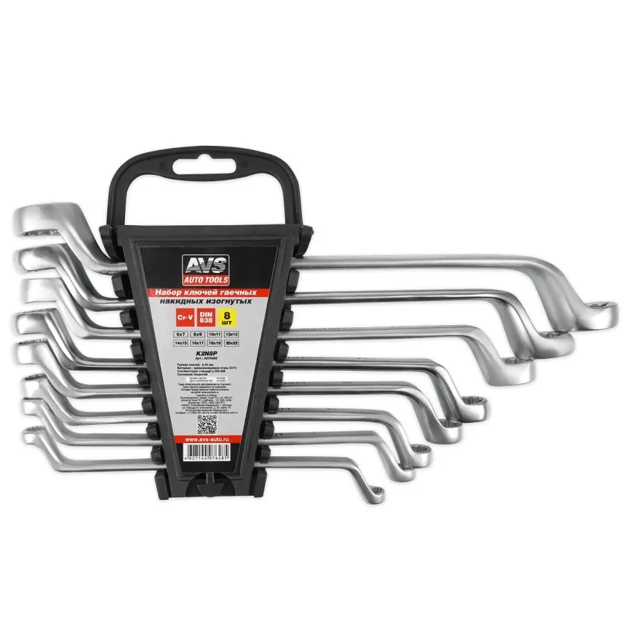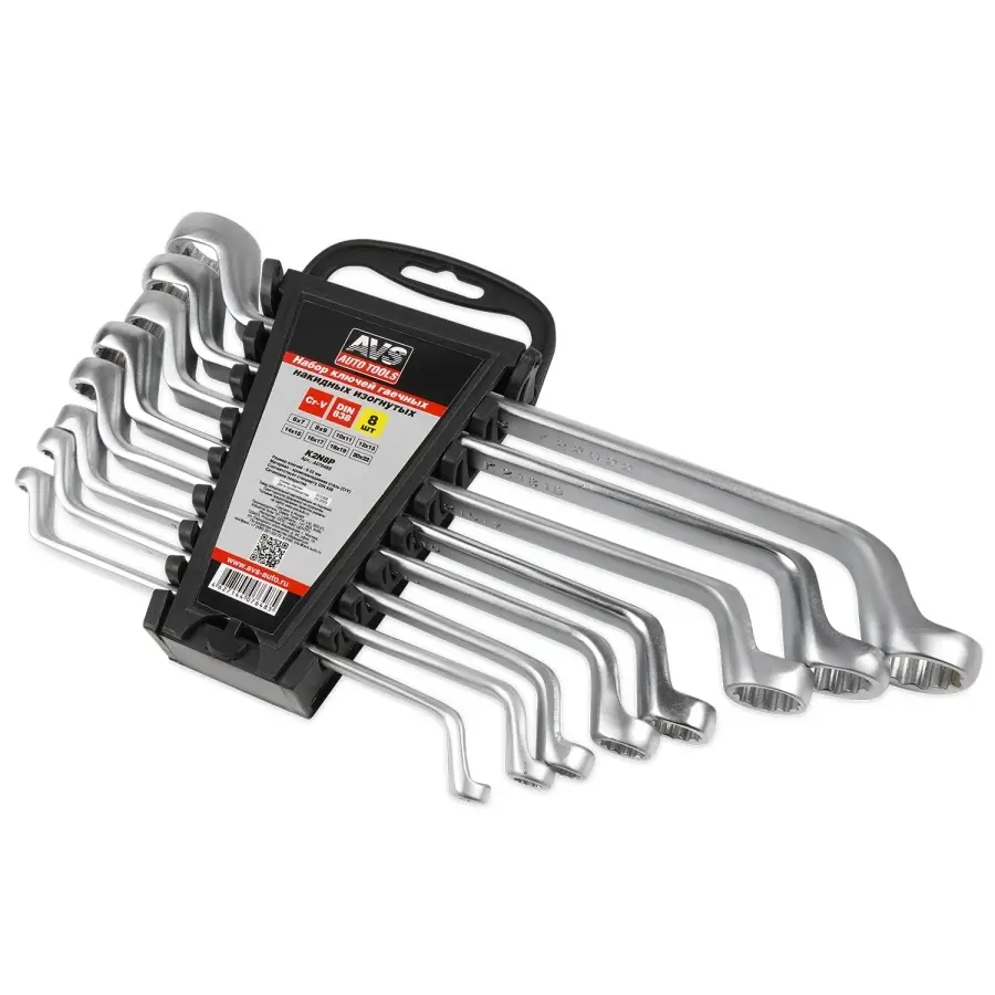 Набор ключей гаечных накидных изогнутых на держателе (6-22 мм) (8 предметов) AVS K2N8P