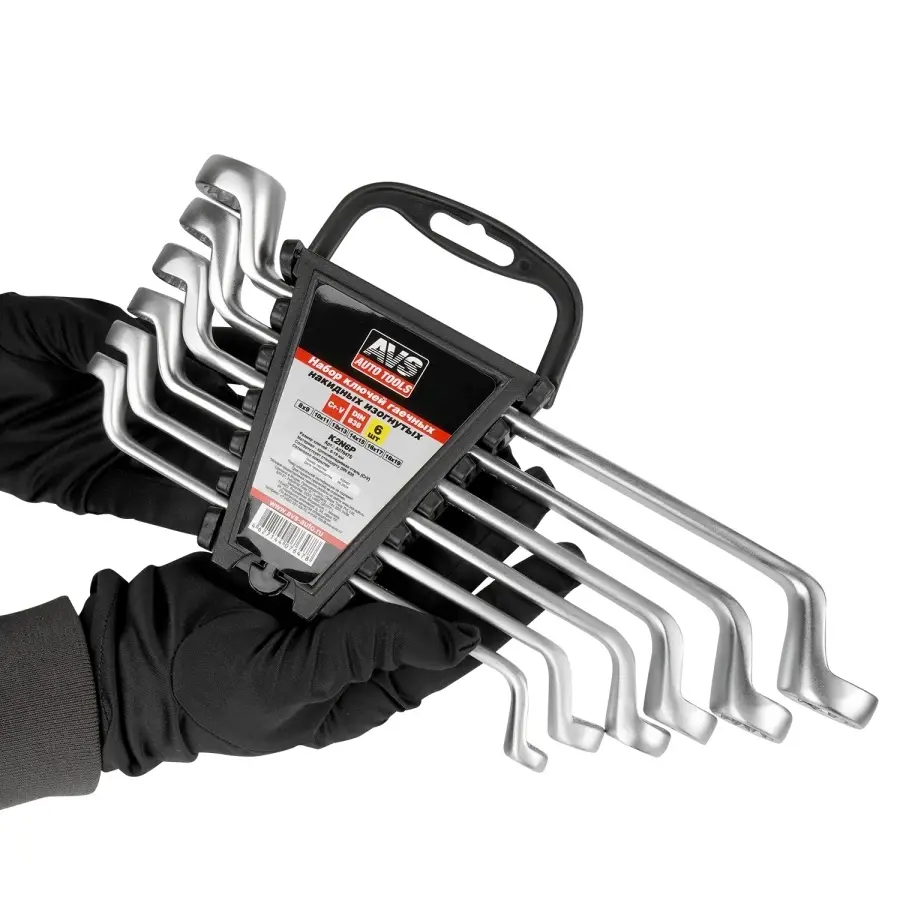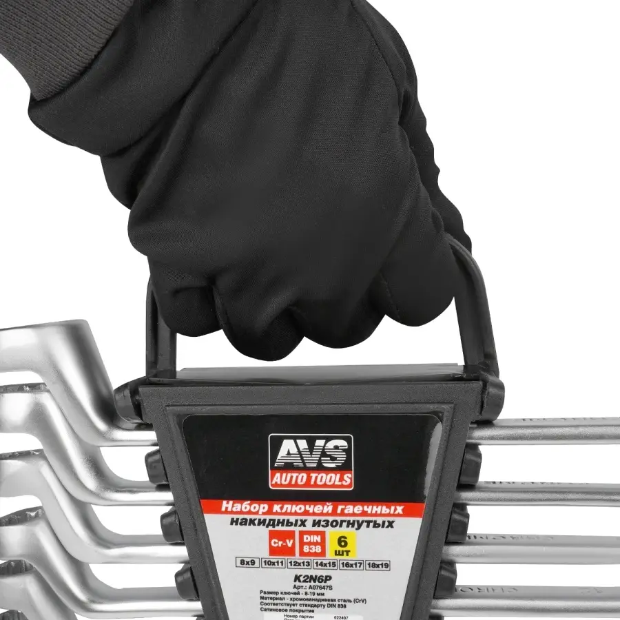 Набор ключей гаечных накидных изогнутых на держателе (8-19 мм) (6 предметов) AVS K2N6P