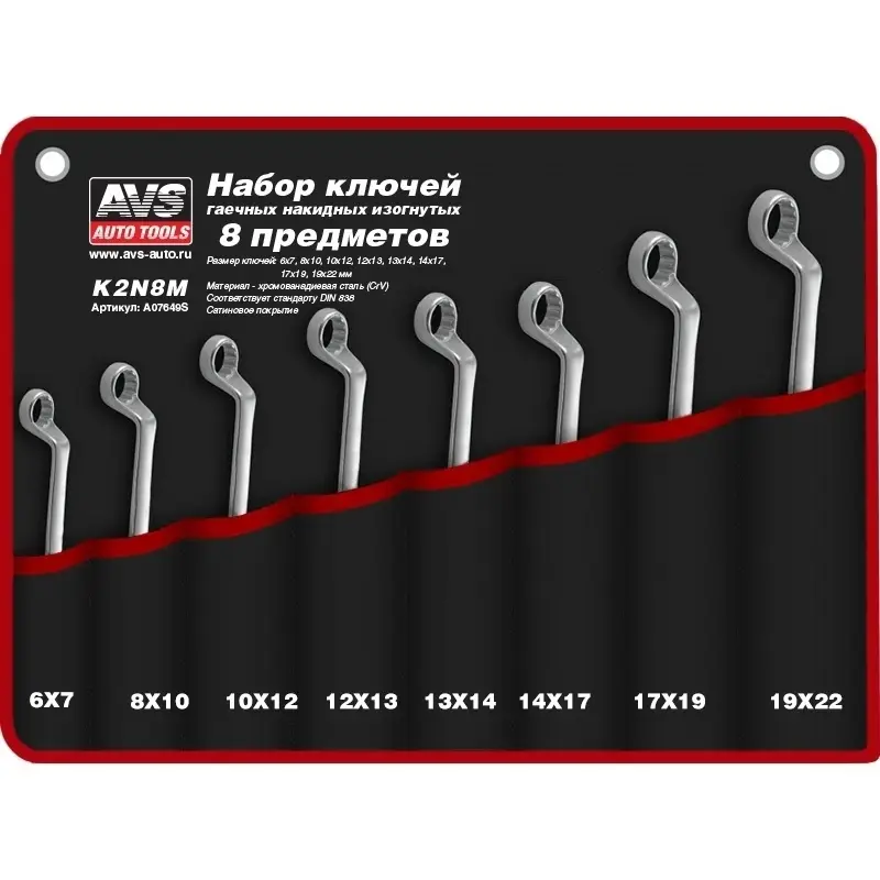 Набор ключей гаечных накидных изогнутых в сумке (6-22 мм) (8 предметов) AVS K2N8M