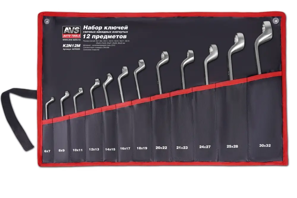 Набор ключей гаечных накидных изогнутых в сумке (6-32 мм) (12 предметов) AVS K2N12M