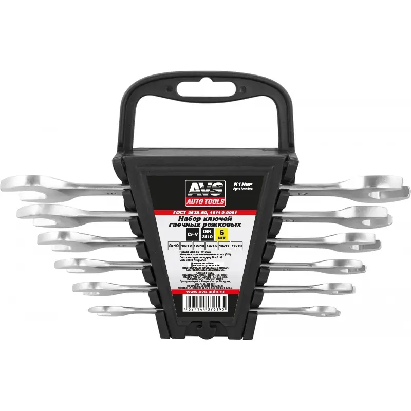 Набор ключей гаечных рожковых на держателе (8-19 мм) (6 предметов) AVS K1N6P