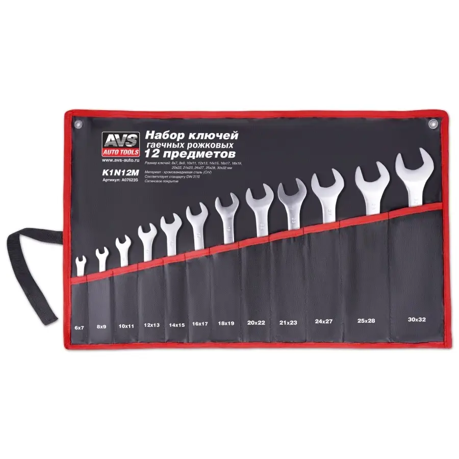 Набор ключей гаечных рожковых в сумке (6-32 мм) (12 предметов) AVS K1N12M