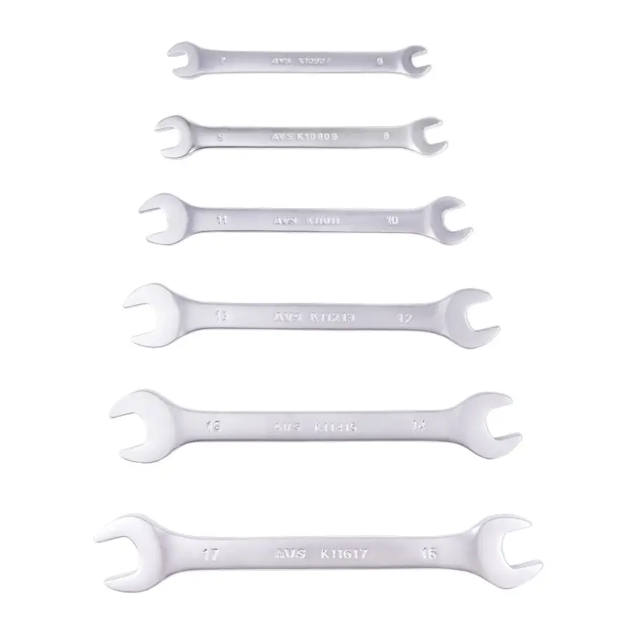 Размеры ключей: 6х7, 8х9, 10х11, 12х13, 14х15, 16х17, 18х19, 20х22, 21х23, 24х27, 25х28, 30х32 мм