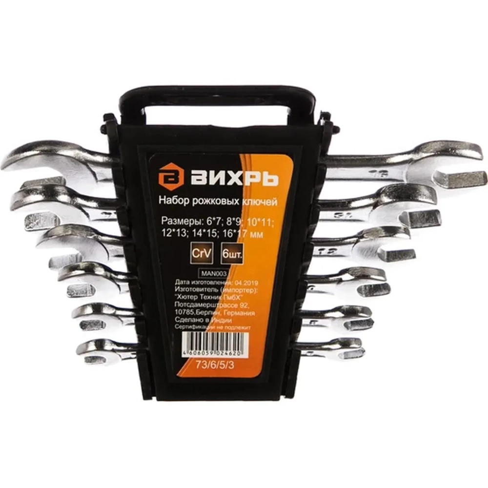 Набор ключей рожковых 6 шт. 6 - 17 Вихрь 73/6/5/3