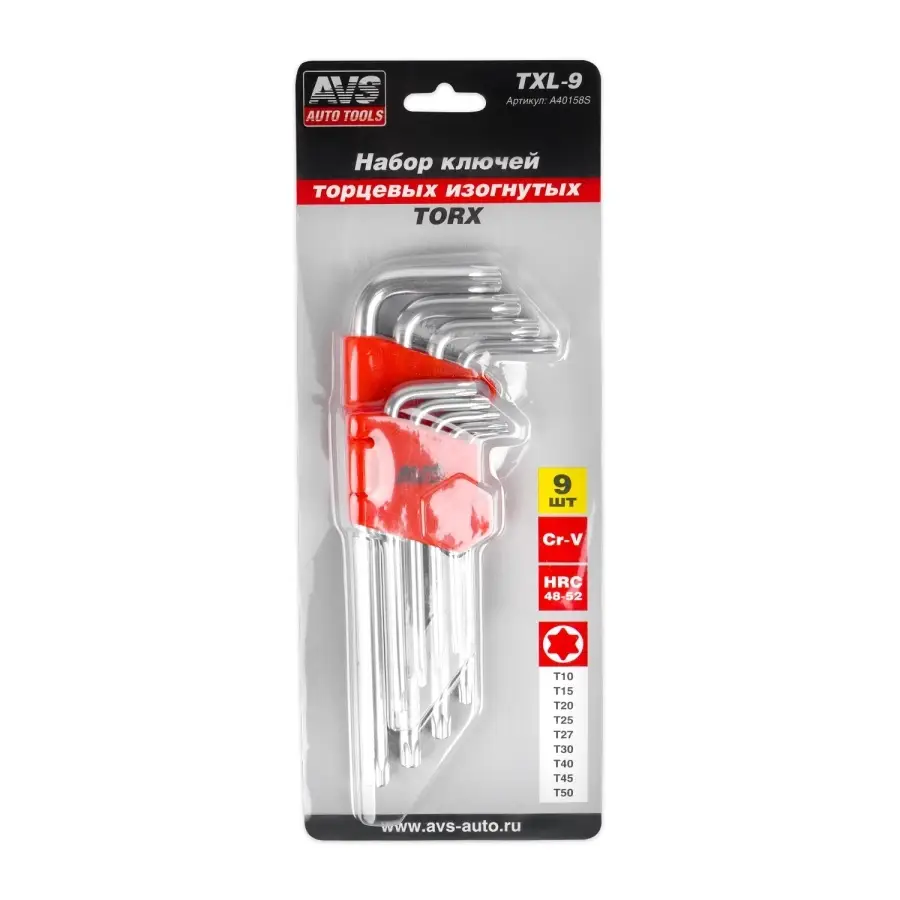 Набор ключей торцевых изогнутых TORX 9 предметов (T10-T50) АVS TXL-9