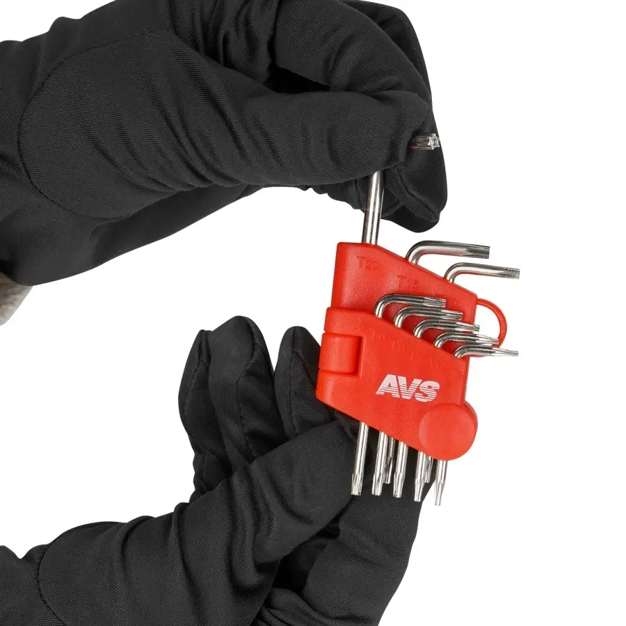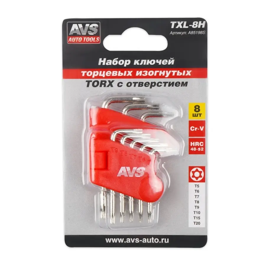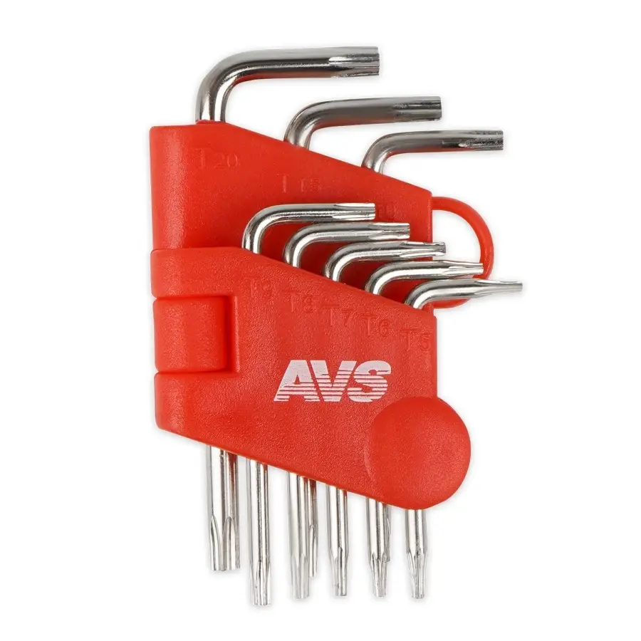 Набор ключей торцевых изогнутых TORX МИНИ с отверстием 8 предметов (T5-T20) AVS TXL-8H