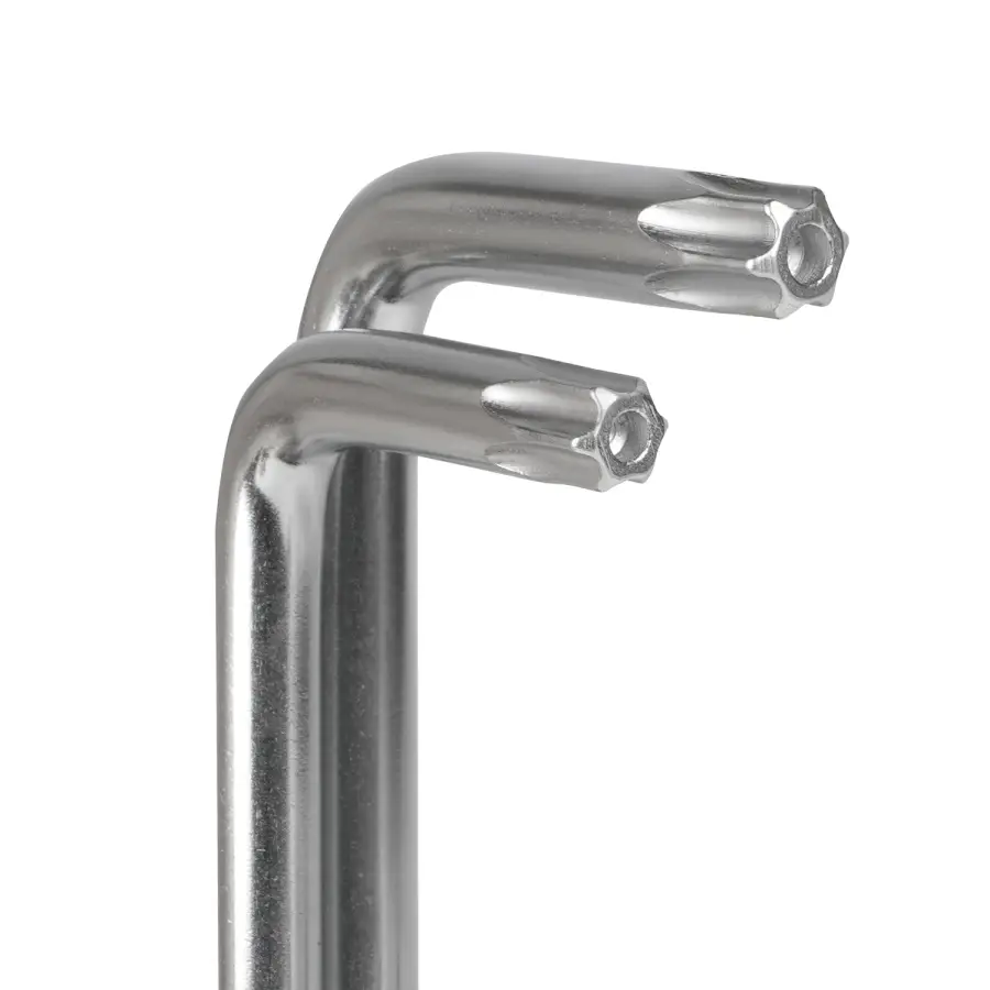Набор состоит из 9-ти Г-образных ключей TORХ с отверстием, в пластиковом держателе. Предназначен для работы с соединениями с шлицем TORX.