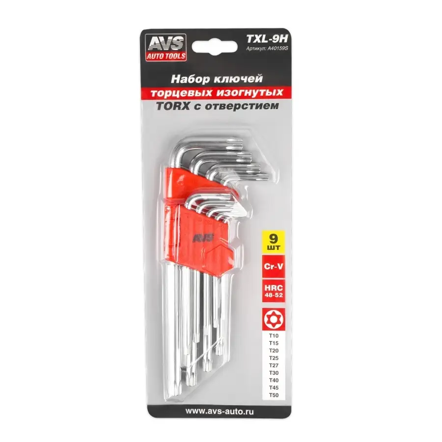 Набор ключей торцевых изогнутых TORX с отверстием 9 предметов (T10-T50) AVS TXL-9H