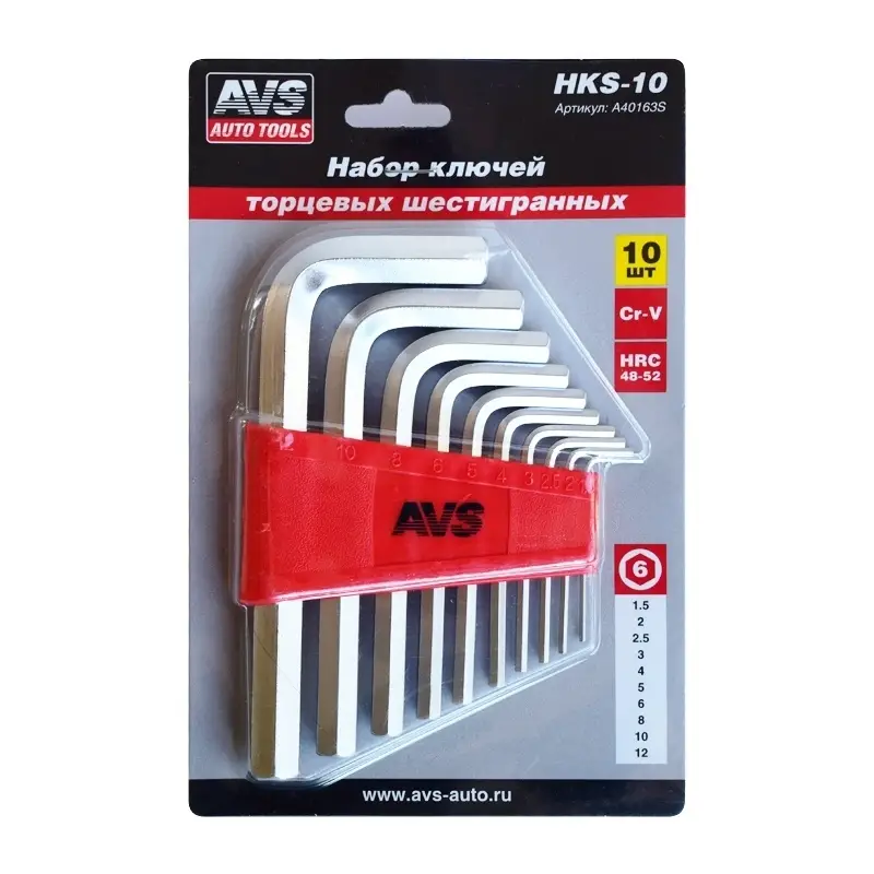 Набор ключей торцевых шестигранных 10 предметов (1,5-12мм) AVS HKS-10