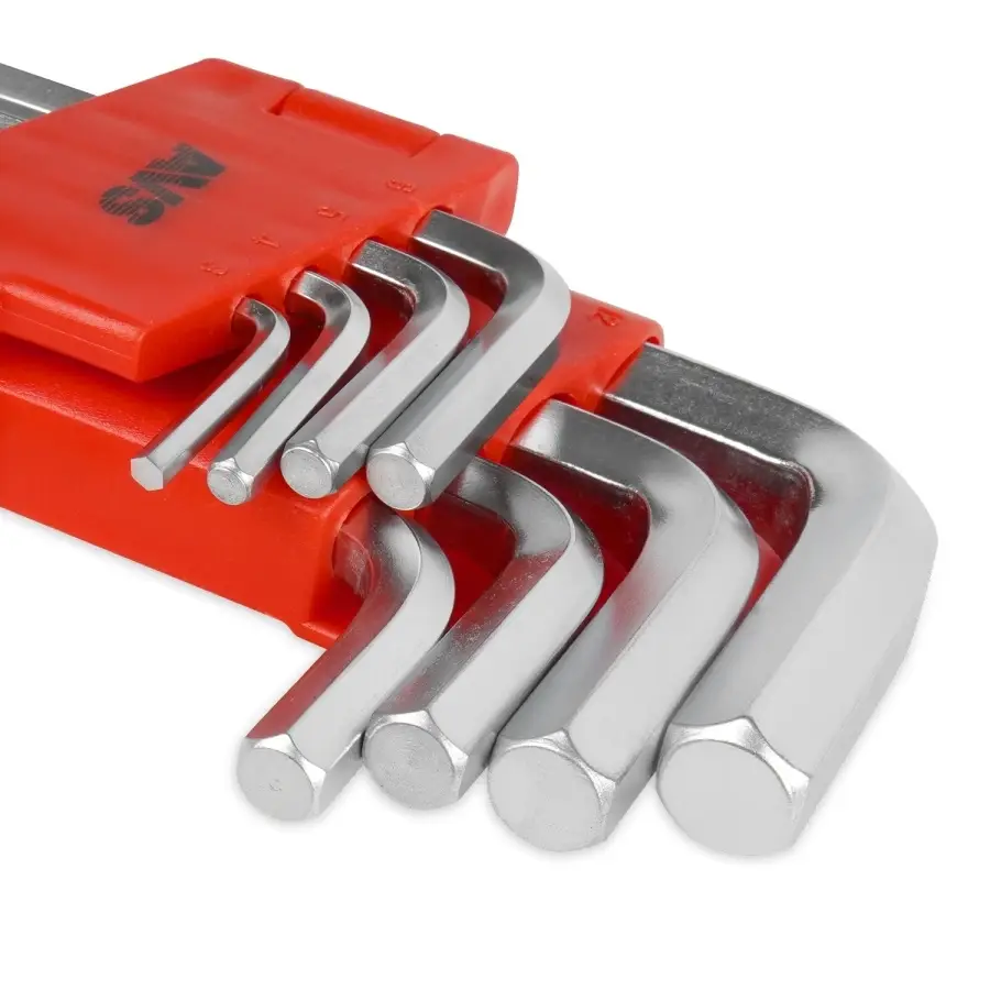 Набор состоит из 8-ми Г-образных шестигранных ключей, в пластиковом держателе. Предназначен для работы с соединениями с шестигранным шлицем.