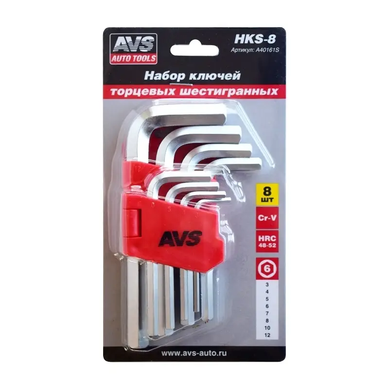 Набор ключей торцевых шестигранных 8 предметов (3-12мм) AVS HKS-8